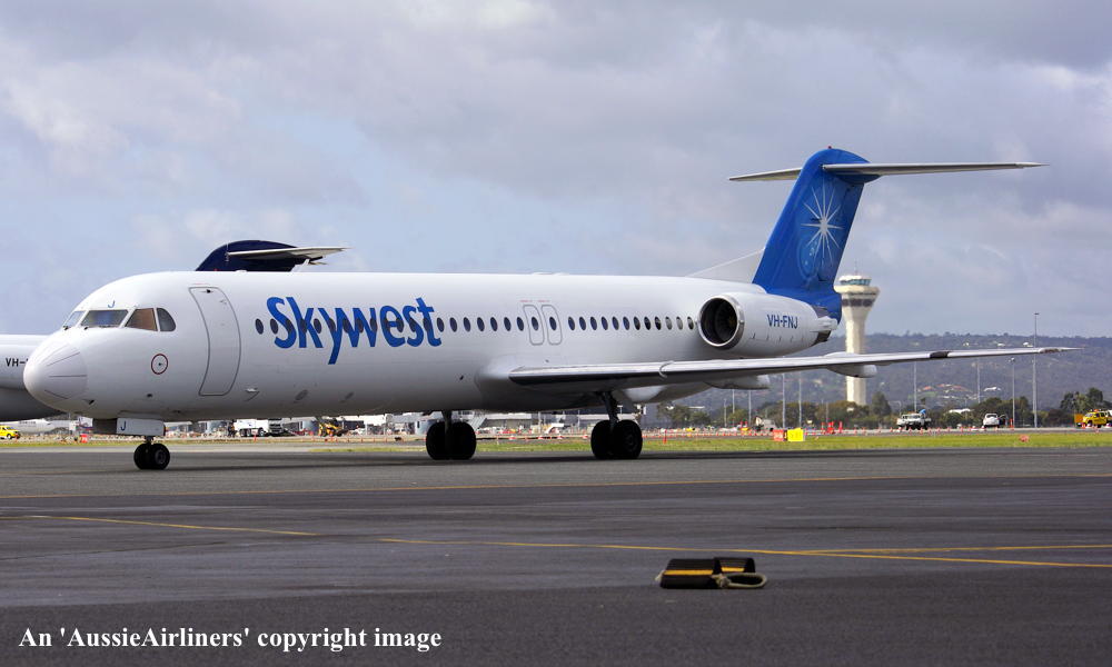 VH-FNJ. Skywest - in the standard livery at Perth Airport, August 16, 2011. (R. N. Smith Collection Copyright Image 1996-149.) |