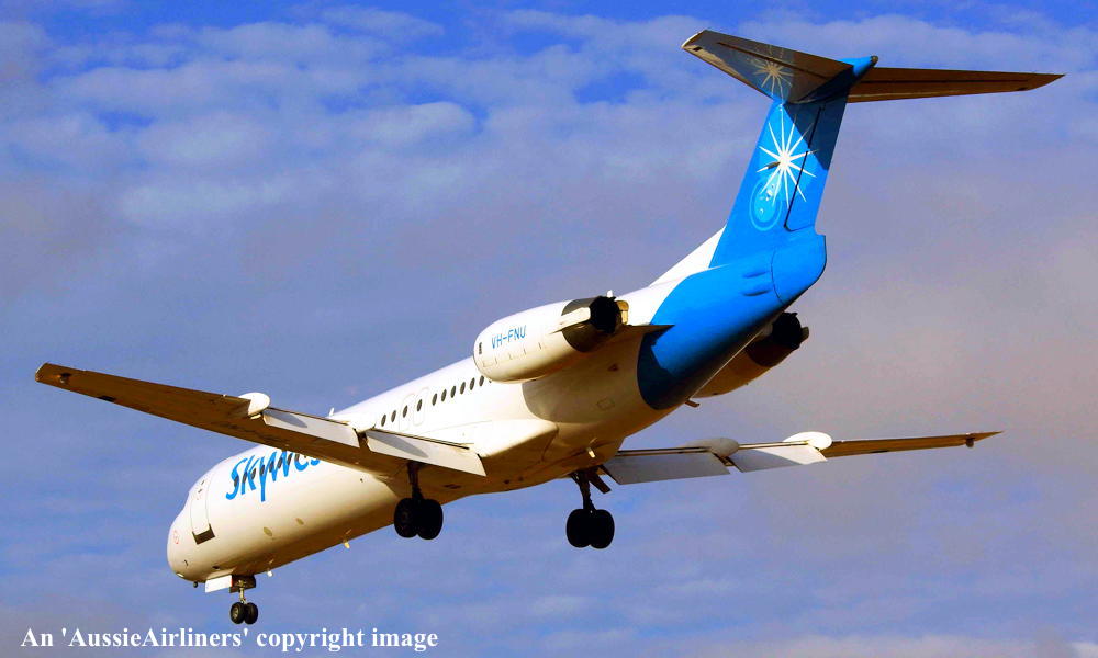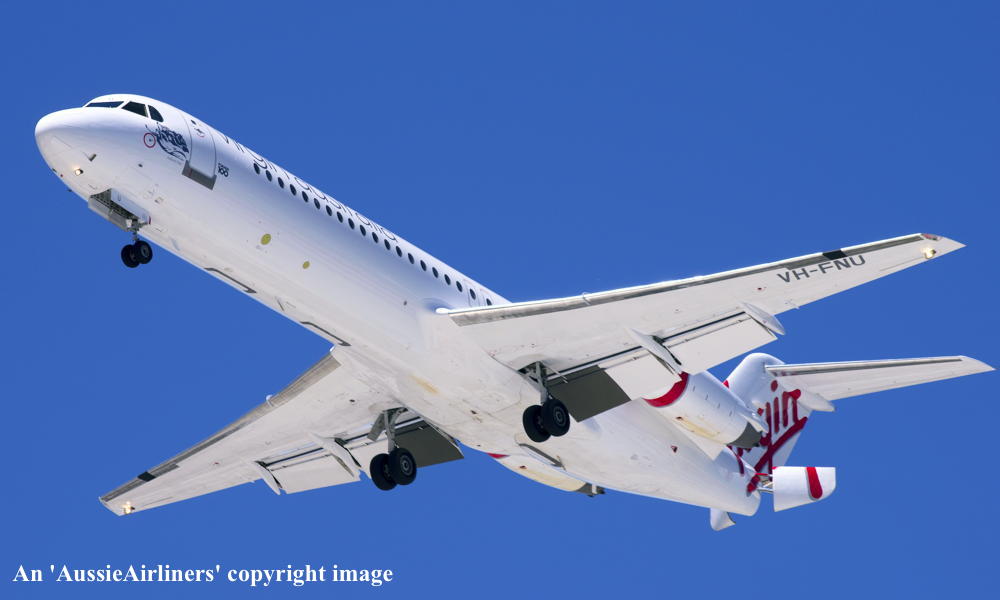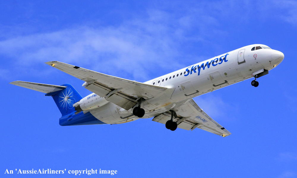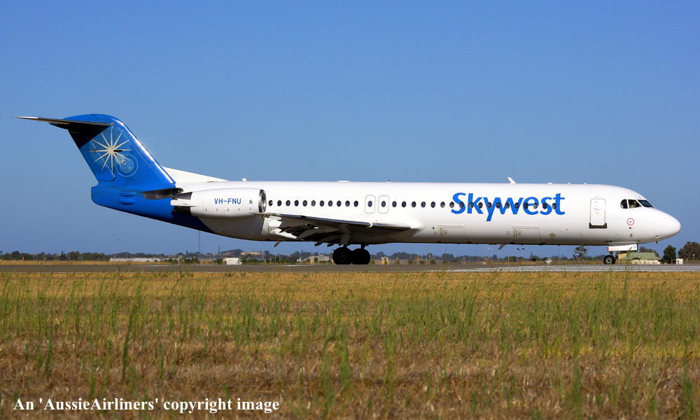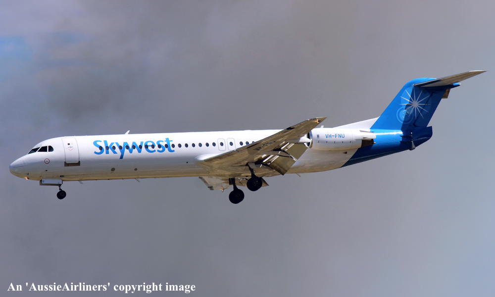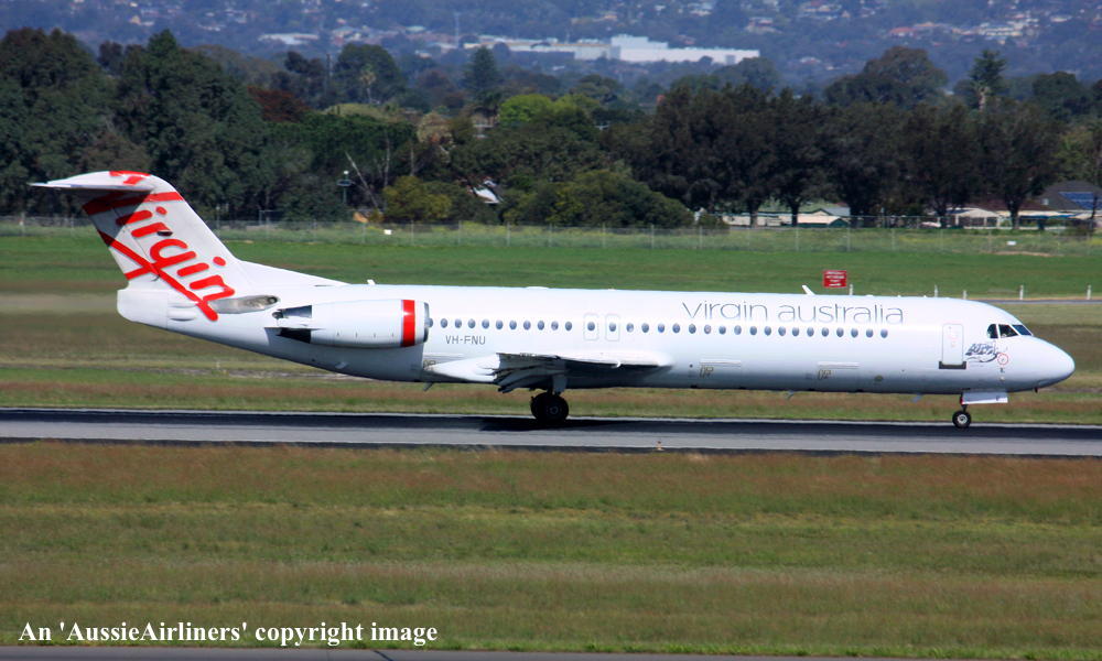 VH-FNU. Fokker F28-0100. c/n 11373. Was also registered as: N893US; OO-TUF. |