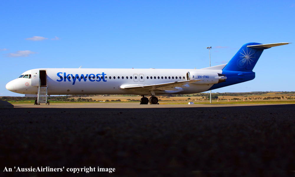 VH-FNU. Skywest - in the standard livery at Perth Airport, August 10, 2011. (R. N. Smith Collection Copyright Image 1995-481.) |