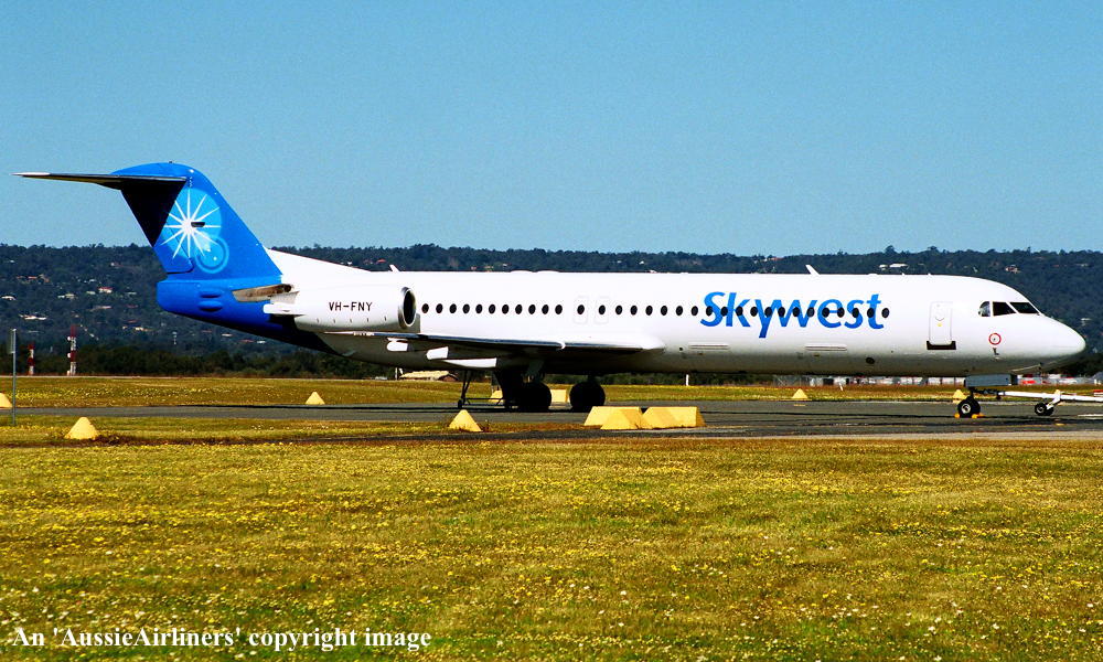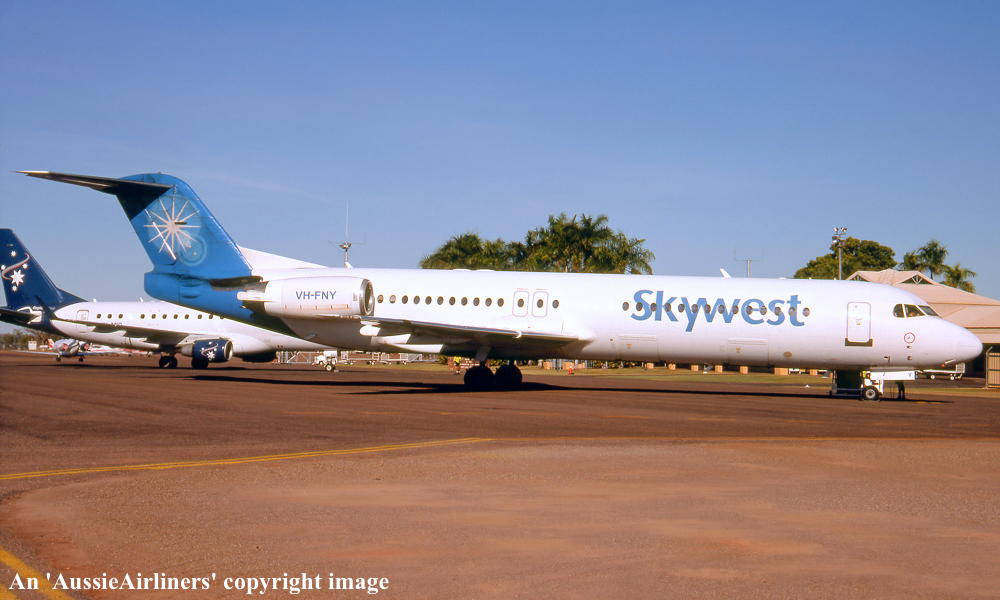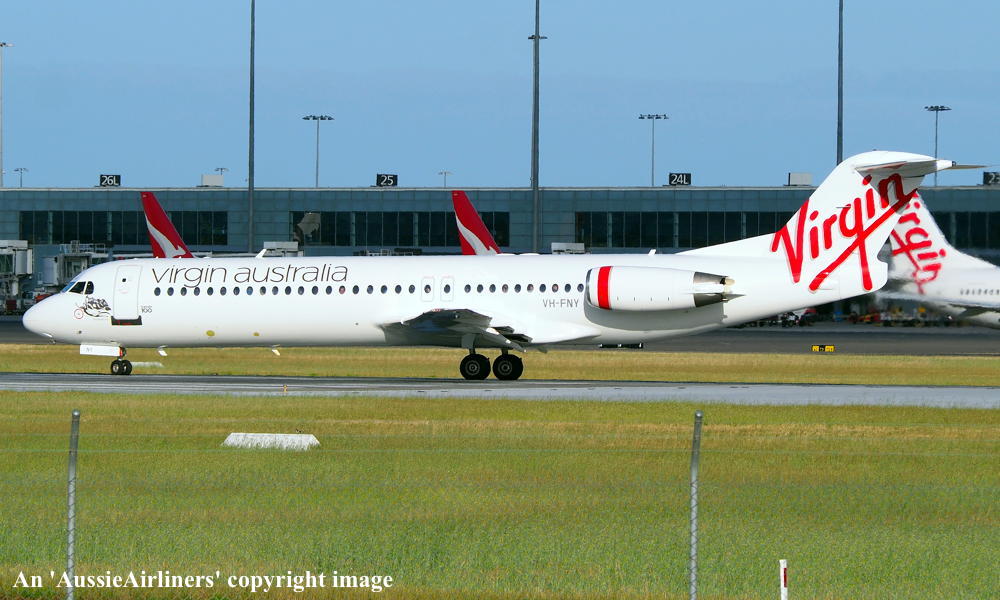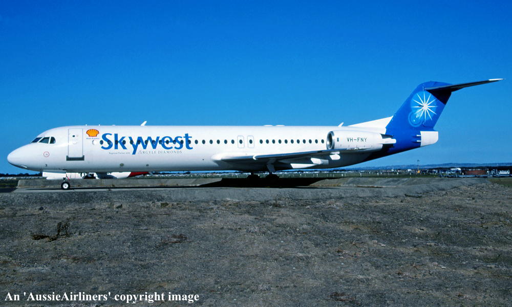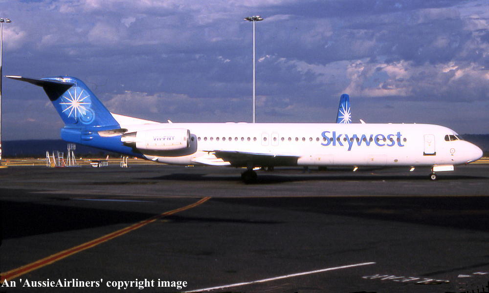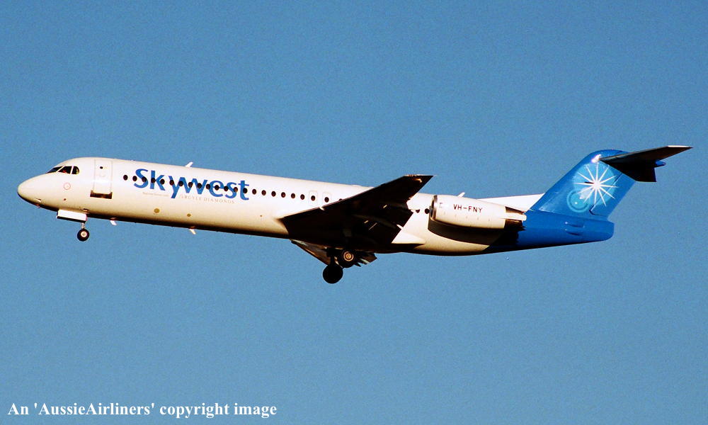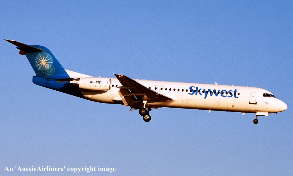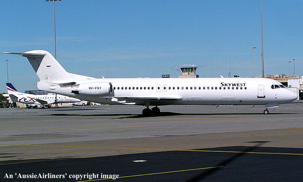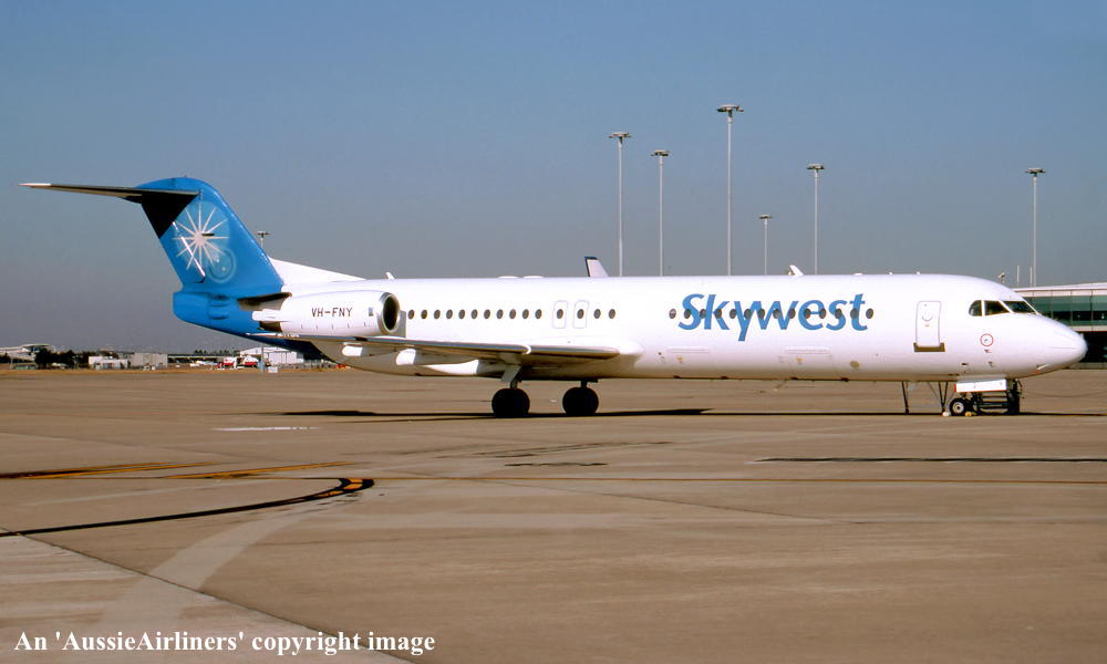 VH-FNY. Fokker F28-0100. c/n 11484. Was also registered as: N108ML. |