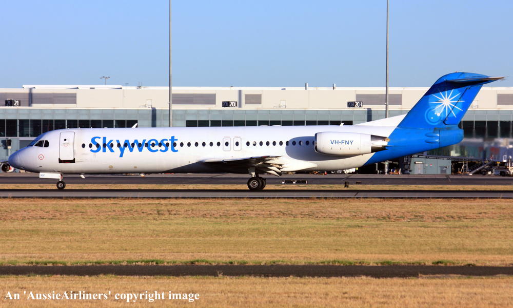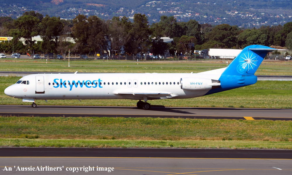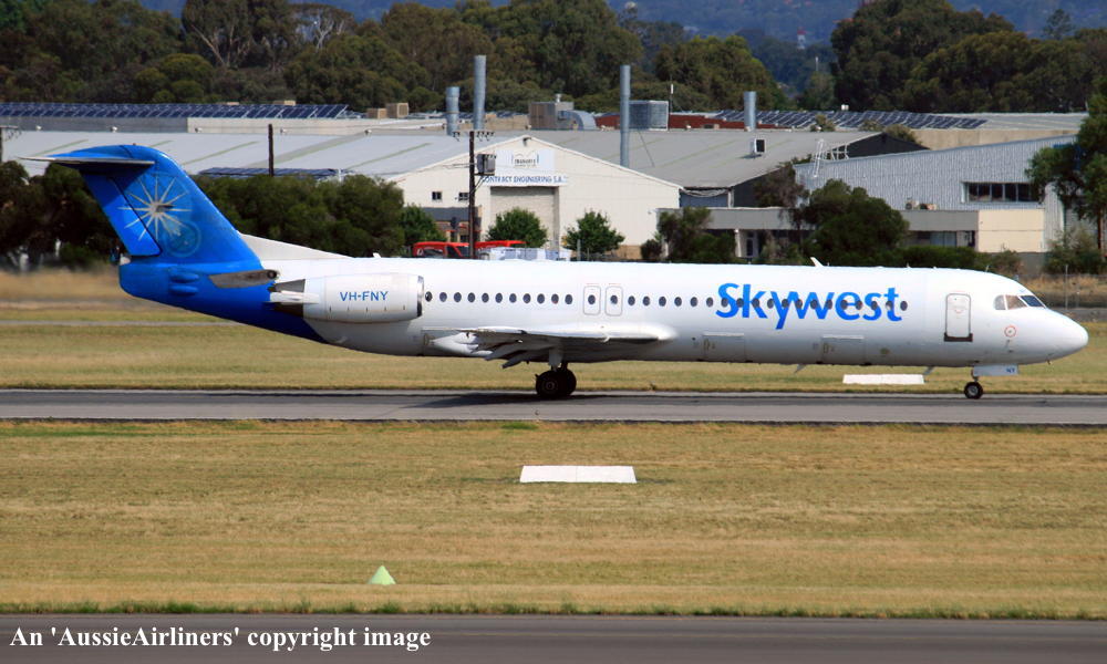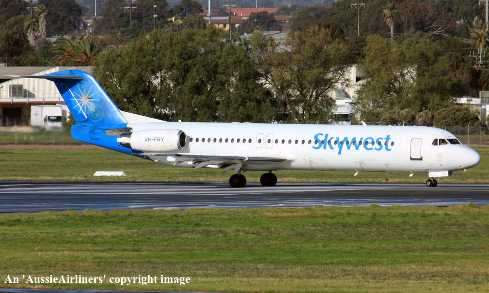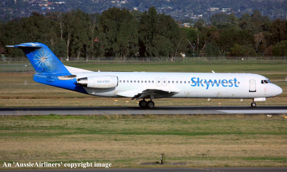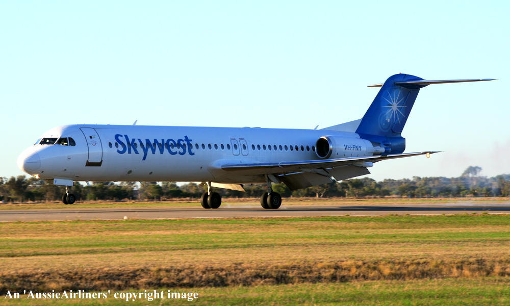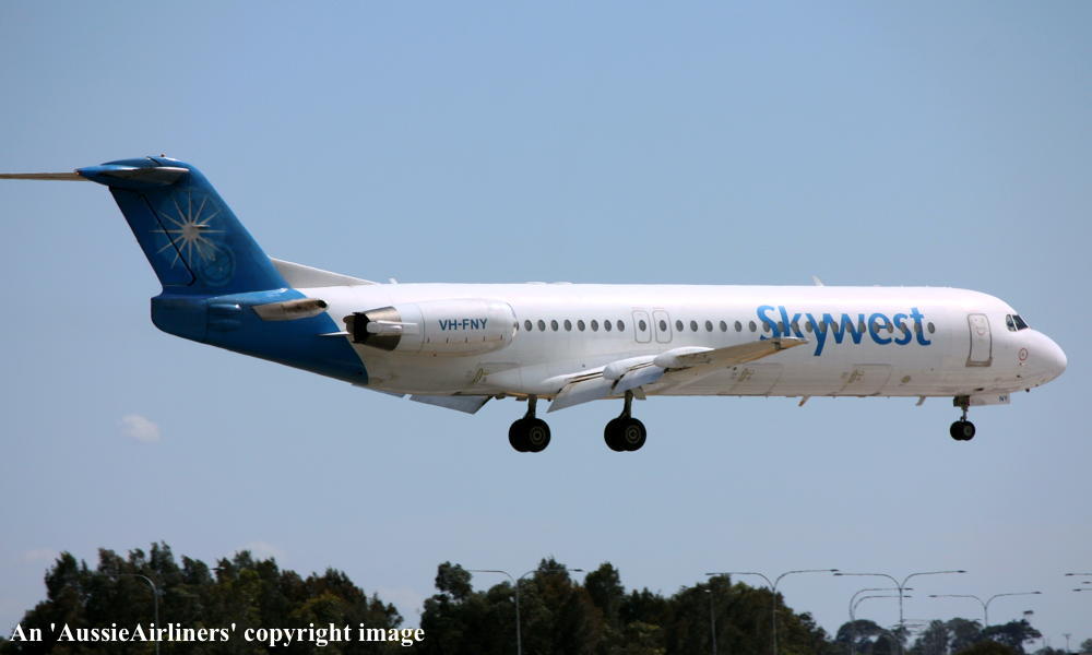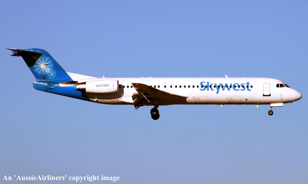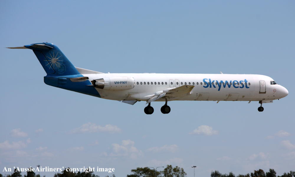 VH-FNY. Fokker F28-0100. c/n 11484. Was also registered as: N108ML. |