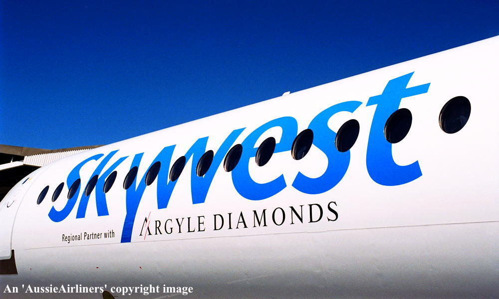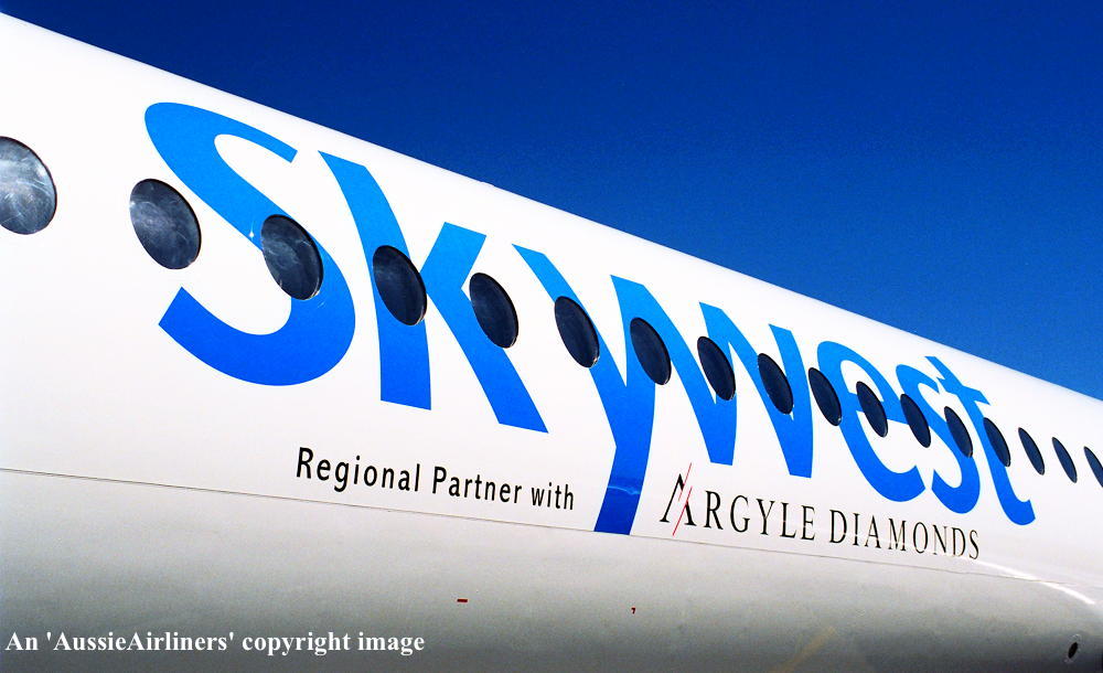 VH-FNY. Skywest - in the standard livery with additional 'Argyle Diamonds' titles at Perth Airport, November 2003. (G. Wood Copyright Image 1995-161.) |