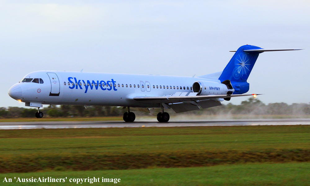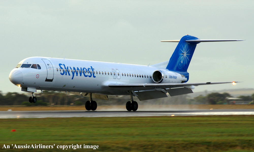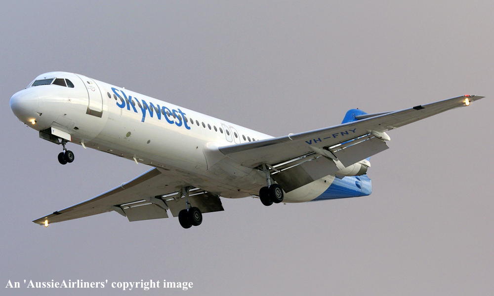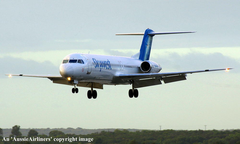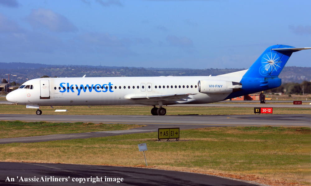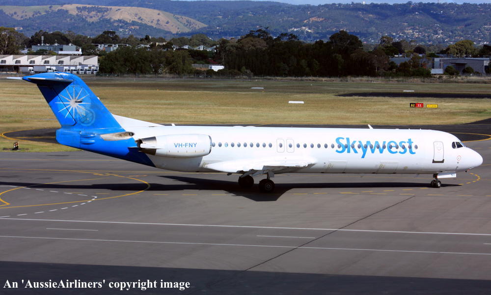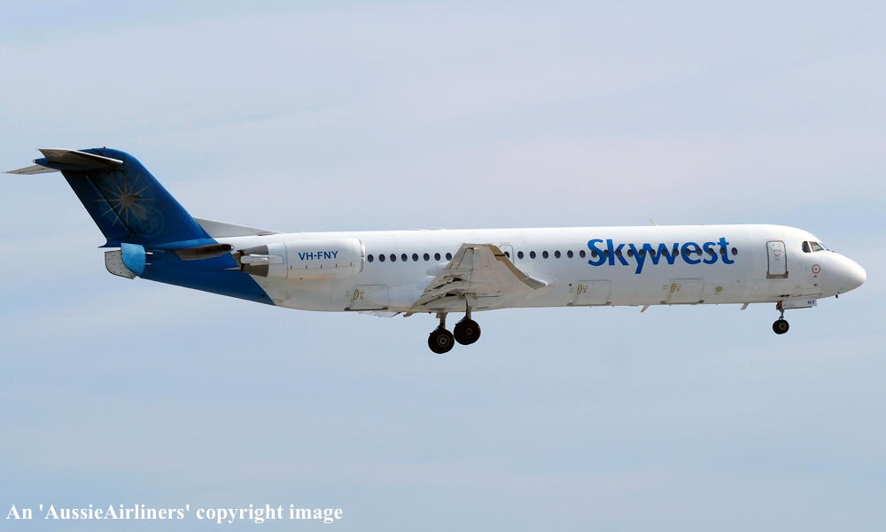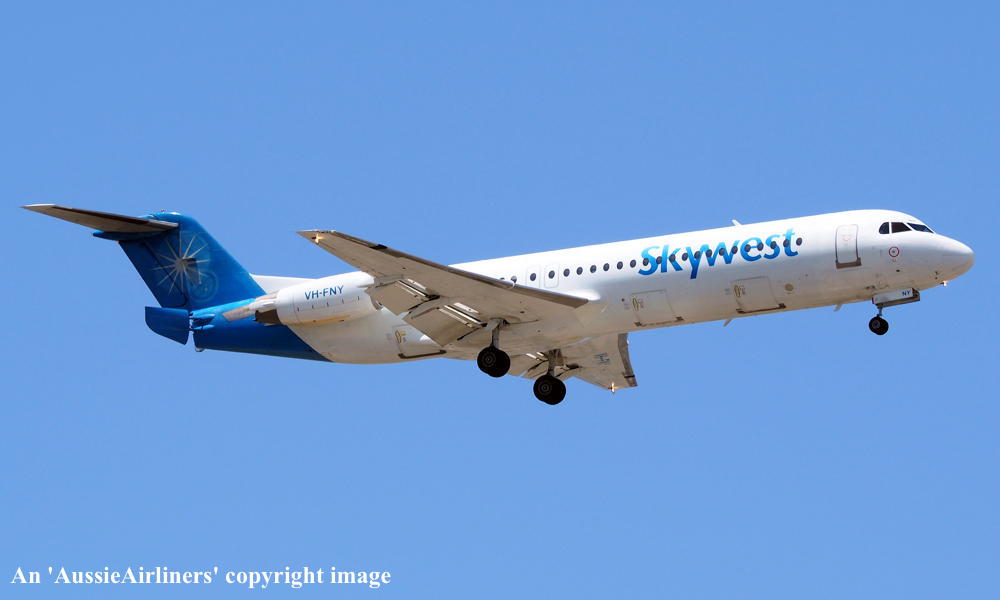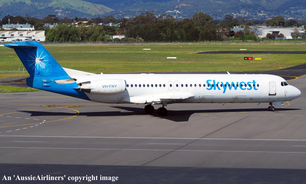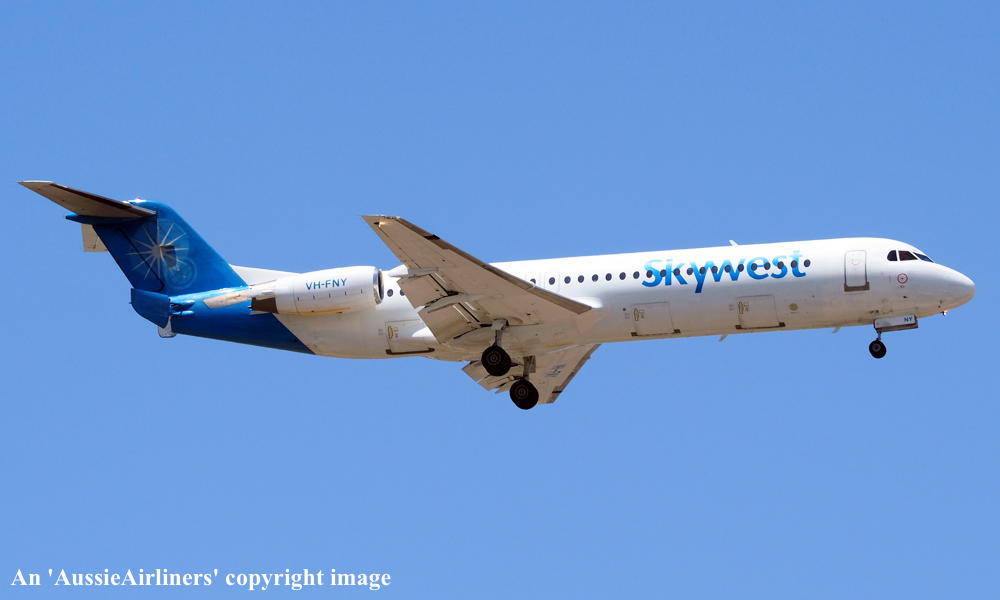 This aircraft was ordered by Saudia Arabian Airlines but it was not taken up The fuselage was stored at Amsterdam (Schiphol) The temporary export registration marks 'E-1325 / PH-EZA' was placed on the aircraft - December 24, 1993 The temporary export registration 'E-1325 / PH-EZA' was reserved by Fokker Aircraft B.V. - December 24, 1993 The fuselage was placed on production line - August 15, 1994 First flown as 'PH-EZA' in the Midway livery - October 28, 1994 Powered by Rolls Royce Tay 650-15 engines Sold to First Security Bank, Utah - November 03, 1994 The temporary export registration 'E-1325 / PH-EZA' was removed from the aircraft - November 04, 1994 The aircraft was cleared for export to the United States - November 04, 1994 Entered onto the United States Aircraft Register as N108ML - November 04, 1994 Accepted by Midway Airlines at Amsterdam (Schiphol) - November 04, 1994 Departed Amsterdam (Schiphol) on the ferry flight to the United States via Keflavik - November 04, 1994 Sold to Wells Fargo Northwest NA - 2001 Operated its final revenue service Boston - Raleigh - Durham - August 13, 2001 Withdrawn from use and stored - August 13, 2001 It had flown 18,714 hours with 13,959 cycles It arrived at Woensdrecht for storage in Midway livery - November 09, 2001 Test flown at Woensdrecht in an all-white livery - August 26, 2002 Sold to Skywest Airlines Pty Ltd, Perth - October 2002 Cancelled from the United States Aircraft Register - November 01, 2002 Entered onto the Australian Aircraft Register as VH-FNY - November 04, 2002 Registered to Alliance Airlines, Brisbane Departed Woensdrecht on the delivery flight to Australia in an all-white livery - November 04, 2002 It arrived at Brisbane on completion of the delivery flight - November 07, 2002 Leased to Skywest Airlines Ferried Brisbane - Alice Springs - Perth on delivery to Skywest as XR9001 - November 14, 2002 Operated its first Skywest revenue service Perth - Lake Argyle as XR201 - November 14, 2002 Registered to Skywest Airlines, Perth - July 22, 2003 Rolled out in the standard Skywest livery at Perth - September 15, 2003 Leased to Alliance - September 18, 2004 to September 28, 2004 Operated its first Alliance service Brisbane - Townsville - Cloncurry as QQ716 - September 18, 2004 Operated its final Alliance service Lawn Hill - Townsville as QQ922 - September 28, 2004 Ferried Townsville - Alice Springs - Perth - September 28, 2004 Leased to Alliance and ferried Perth - Townsville - December 06, 2004 Entered service with Alliance Townsville - Lawn Hill - Townsville as QQ921/922 - December 07, 2004 This lease to Alliance was terminated - April 16, 2005 Ferried Townsville - Alice Springs - Perth as QQ998 - April 17, 2005 Operated the Skywest service Darwin - Perth as XR42 - February 18, 2006 It was then damaged on the ground at Perth during a fierce electrical storm - February 21, 2006 Returned to service Perth - Kunnunurra as XR13 - June 01, 2006 Registered to F100 Pty Ltd - April 3, 2007 Leased to Skywest Airlines (Australia) Pty Ltd as the registered operator Virgin Australia announced its intention to acquire Skywest Airlines - October 30, 2012 Virgin Australia finalised the acquisition of Skywest Airlines - April 11, 2013 Skywest Airlines is renamed Virgin Australia Regional Airlines - May 07, 2013 This aircraft was the last Fokker F28-0100 in the Virgin Australia fleet to be repainted Registered to F100 Fleet Pte Ltd, Singapore - September 19, 2013 Leased to Virgin Australia Regional Airlines Pty Ltd, Perth - September 19, 2013 Operated its last service in the Skywest livery - ? Departed Perth on the ferry flight to Singapore for planned maintenance - March 12, 2017 Ferry route: Perth - Port Headland - Seletar Departed Singapore (Seletar) on the ferry flight to Perth as VOZ9942 - April 14, 2017 Ferry route: Singapore (Seletar) - Port Headland - Perth Departed Perth on the ferry flight to Singapore (Seletar) for repainting - October 02, 2018 Arrived Singapore (Seletar) on completion of the ferry flight - October 03, 2018 Ferry route: Perth - Port Headland (VOZ9925) - Singapore (VOZ9940) The aircraft was named 'Geograph Bay' Registered to Virgin Australia Regional Airlines Pty Lyd - March 16, 2021 Current |