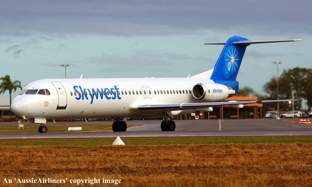 VH-FNY. Skywest - in the standard livery at Perth Airport, August 30, 2012. (M. Lynam Copyright Image 1995-453.) |