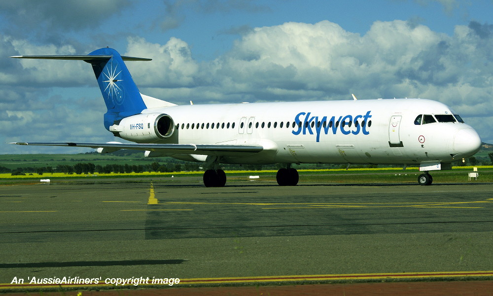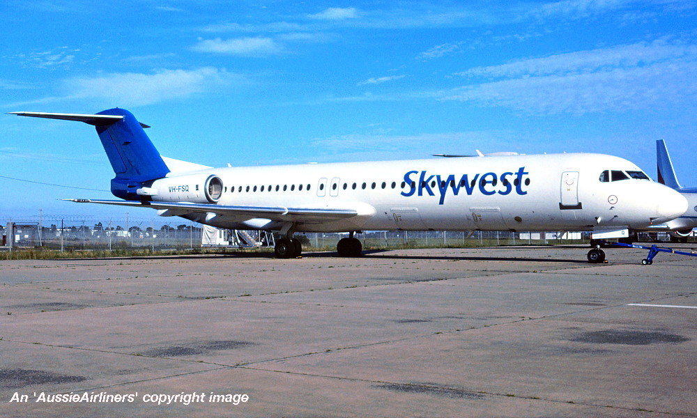 VH-FSQ. Fokker F28-0100. c/n 11450. Was also registered as: PH-MXL; N107ML; 9N-AHI; N450DR. |