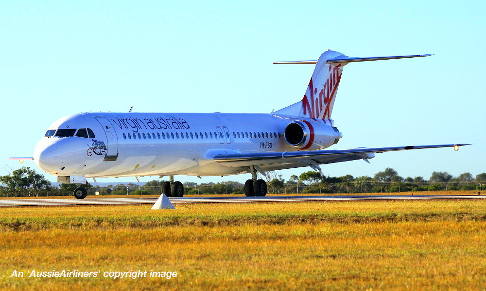 VH-FSQ. Virgin Australia - 'Bill's Bay' in the standard livery at Geraldton Airport, September 20, 2013. (R. N. Smith Collection Copyright Image 1995-768.) |