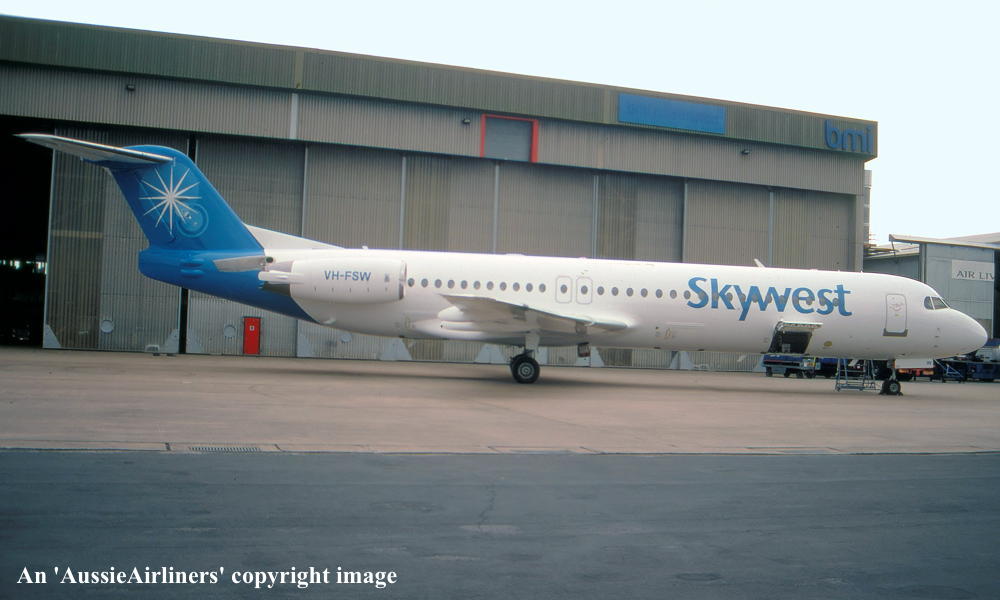 VH-FSW. Fokker F28-0100. c/n 11391. Was also registered as: N896US; PH-CXR; D-AGPR. |