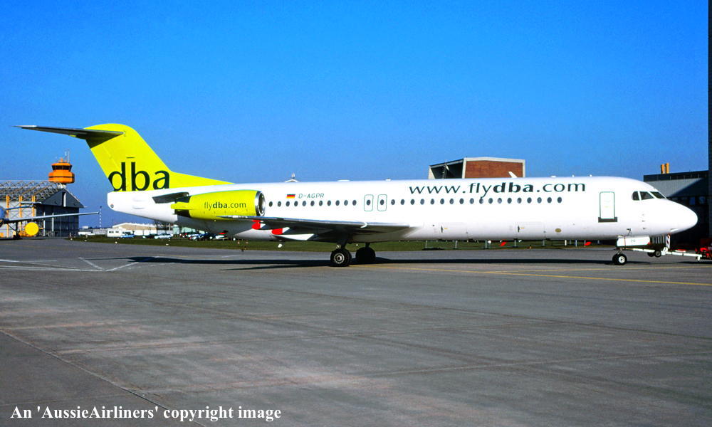 D-AGPR. DBA - in the standard livery at Nuremberg Airport, August 2005. (R. N. Smith Collection Copyright Image 1995-660.) |
