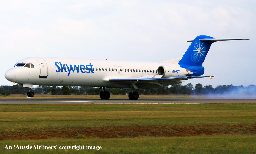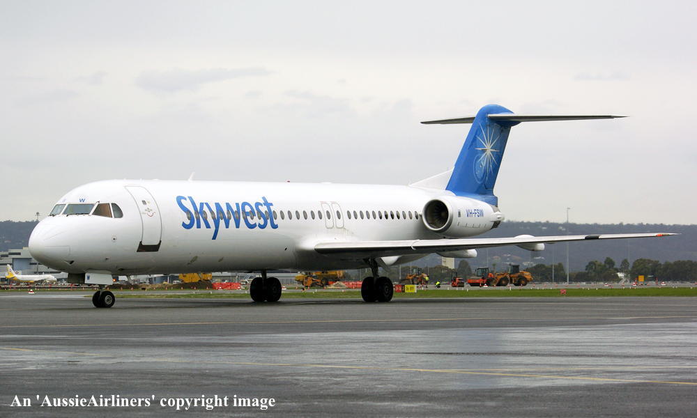This aircraft was ordered new by US Air Inc - ? Registration 'N896US' was reserved by US Air Inc - January 13, 1988 The temporary export registration 'E-1175 / PH-EZB' was applied to the aircraft - March 24, 1992 The temporary export registration 'E-1175 / PH-EZB' was reserved by Fokker Aircraft B.V. - March 24, 1992 First flown as 'PH-EZB' in the US Air livery - April 09, 1992 Powered by Rolls Royce Tay 650-15 engines The aircraft was cleared for export to the United States - May 07, 1992 Entered onto the United States Aircraft Register as N896US - May 1992 Accepted by US Air at Amsterdam (Schiphol) - May 10, 1992 Departed Amsterdam (Schiphol) on the delivery flight to the United States via Reykjavik - May 10, 1992 It arrived at Pittsburg on cmpletion of the delivery flight - May 20, 1992 It had flown 2,701 hours with 2,470 cycles - June 30, 1993 Registered to US Airways when US Air changed its name - February 27, 1997 Operated its final revenue service Indianapolis - Charlotte - December 01, 2001 It arrived at Mojave for storage - December 05, 2001 Sold to Fokker Services BV - 2003 It arrived at Woensdrecht for storage - September 12, 2003 Cancelled from the United States Aircraft Register - October 17, 2003 Entered onto the Dutch Aircraft Register as PH-CXR - November 19, 2003 Registered to Aircraft Financing & Trading BvL 6488 Test flown at Woensdrecht - December 22, 2003 Ferried Woensdrecht - Amsterdam (Schiphol) in US Airways livery for repainting by QAPS - December 24, 2003 Ferried Amsterdam (Schiphol) - Woensdrecht in the 'Germania' livery - January 14, 2004 Cancelled from the Dutch Aircraft Register - February 04, 2004 Entered onto the German Aircraft Register as D-AGPR - February 04, 2004 Registered to Germania Fluggesellschaft GmbH Leased to Deutsch BA as the registered operator - March 30, 2005 It was observed at Hamburg in DBA livery - March 30, 2005 It was observed with 'Welcome to Football' titles - April 2006 Ferried Berlin (Tegel) - Eindhoven for repainting into the Air Berlin livery - November 28, 2006 Rolled out at Eindhoven in the Air Berlin livery - December 03, 2006 Leased to Air Berlin as the registered operator - December 09, 2006 Withdrawn from use and stored - January 2008 Prepared for lease to Alliance Airlines - 2007 Entered onto the Australian Aircraft Register as VH-FSW - August 14, 2008 Registered to F100 Pty Ltd, Subiaco, W. A., Australia Leased to Skywest Airlines (Australia) Pty Ltd as the registered operator Ferried Berlin (Tegel) - East Midlands in the 'Air Berlin' livery - August 21, 2008 Ferried East Midlands - Woensdrecht after repainting into the 'Skywest' livery - September 01, 2008 It arrived at Perth on completion of the ferry flight to Australia - October 10, 2008 Leased to Skywest Airlines at $US106,000 per month for 64 months - October 11, 2008 Operated its first revenue service Perth - Telfer as XR267 - October 23, 2008 Virgin Australia announced its intention to acquire Skywest Airlines - October 30, 2012 Virgin Australia finalised the acquisition of Skywest Airlines - April 11, 2013 Skywest Airlines was officially renamed Virgin Australia Regional Airlines - May 03, 2013 Operated the final Skywest service under the 'XR' designator Broome - Perth as XR16 - August 01, 2013 The aircraft was named 'Bremer Bay' Registered to Virgin Australia Regional Airlines Pty Ltd - March 16, 2021 Current with Virgin Australia Regional Airlines |