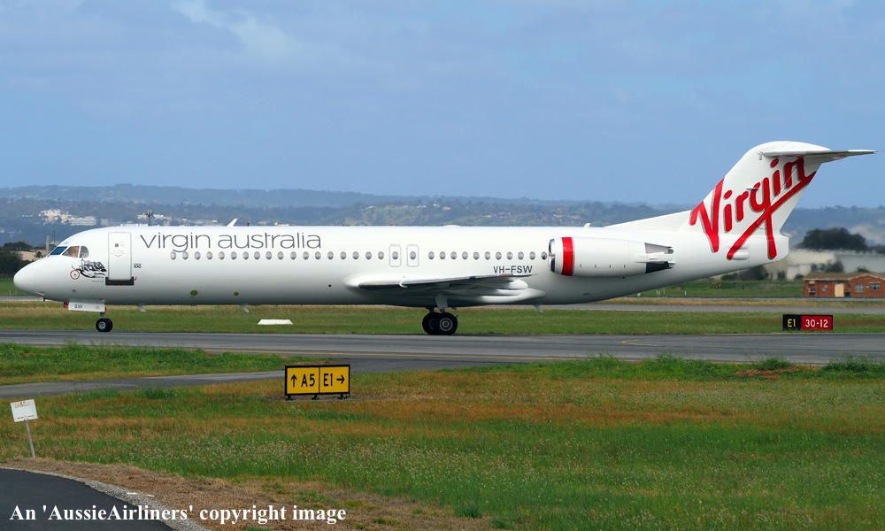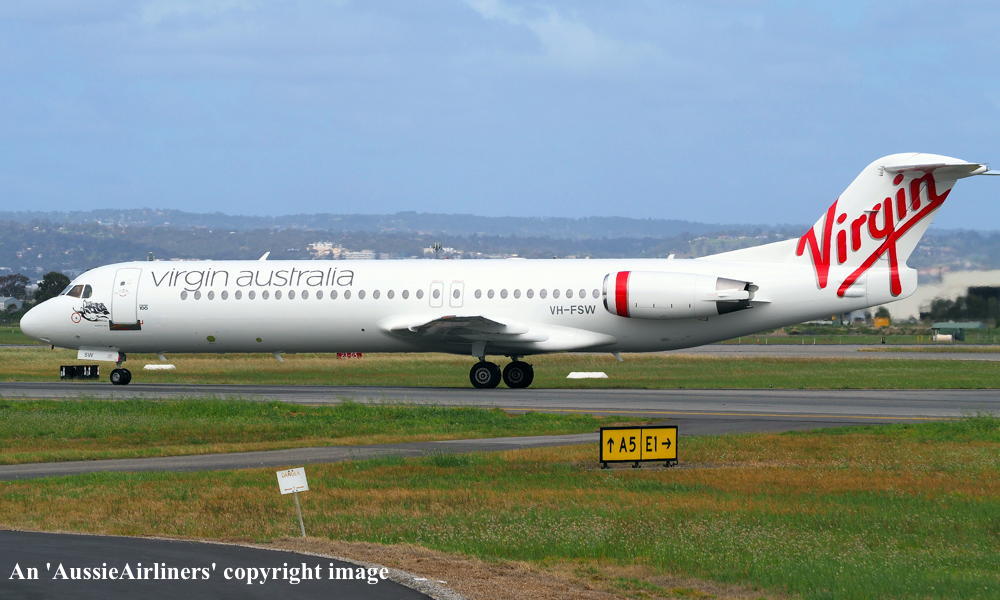 VH-FSW. Virgin Australia - 'Bremer Bay' in the standard livery at Adelaide West Beach Airport, September 12, 2018. (T. Haynes Copyright Image 1996-221.) |