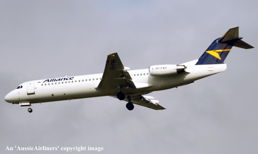 This aircraft was ordered by Wardair, Canada but the order was later cancelled Temporary export registration 'E-1039 / PH-EZW' was applied for by Fokker Aircraft B.V. - March 13, 1990 First flown as 'PH-EZW' in the Air Europe livery - November 24, 1990 Powered by Rolls Royce Tay 650-15 engines The delivery to Air Europe was delayed and the aircraft stored at Amsterdam (Schiphol) Entered onto the British Aircraft Register as G-FIDO - February 15, 1991 Ferried Amsterdam (Schiphol) - London (Gatwick) on delivery to Air Europe as AOE001T - February 15, 1991 Operated its first revenue service Gatwick - Vienna - Gatwick as AOE660/661 - February 16, 1991 Operated its final Air Europe revenue service Copenhagen - London (Gatwick) as AOE063 - March 08, 1991 Air Europe ceased operations - March 08, 1991 Ferried London (Gatwick) - Woensdrecht for storage - March 22, 1991 Cancelled from the British Aircraft Register - June 10, 1991 Entered onto Dutch Aircraft Register as PH-RRG - July 24, 1991 Registered to Fokker Aircraft BV, Amsterdam Test flown at Woensdrecht in an all-white livery - July 25, 1991 Ferried Woensdrecht - Basle for cabin installation for Air Ivoire - August 09, 1991 Ferried Basle - Woensdrecht on completion of the cabin fit-out - August 27, 1991 Entered onto the Ivory Coast Aircraft Register as TU-TIV - August 29, 1991 Cancelled from Dutch Aircraft Register - October 03, 1991 The export registration 'E-1117' was applied for and granted for export to the Ivory Coast It was handed over to Air Ivoire at Woensdrecht - October 03, 1991 The aircraft was named 'Bandama' Ferried Amsterdam (Schiphol) - Marocco - October 04, 1991 Aircraft advertised for sale with 10,433 hours and 8,311 cycles - July 14, 1997 Withdrawn from use and stored at Norwich, England - August 25, 1997 Entered onto the British Aircraft Register as G-BXNF - October 15, 1997 Registered to Airlines Facilities Pty, Ltd - September 18, 1998 Cancelled from the British Aircraft Register - May 14, 1999 Entered onto Australian Aircraft Register as VH-FWH - May 27, 1999 Registered to Flight West Airlines Pty Ltd, Brisbane It arrived at Brisbane on completion of the delivery flight with Southern Cross Aviation - July 29, 1999 Flight West ceased operations - June 19, 2001 Sold to Queensland Airlines Holding Pty Ltd - April 05, 2002 Rolled out in the 'Alliance' livery at Brisbane - August 25, 2002 Operated the inaugural Alliance Brisbane - Rockhampton service - August 26, 2002 Operated the inaugural Alliance Brisbane - Norfolk Island service as QQ735 - September 07, 2002 The aircraft was named 'City of Townsville' at a ceremony at Townsville Airport - October 02, 2002 Leased to Air Niugini Ferried Brisbane - Port Moresby as QQ555 - June 28, 2004 Operated its first Air Niugini revenue service Port Moresby - Cairns as PX090 - June 30, 2004 Operated its final Air Niugini revenue service Port Moresby - Cairns as PX098 - September 26, 2004 Ferried Cairns - Townsville as QQ999 - September 26, 2004 Returned to Alliance service Townsville - Phosphate Hill as QQ931 - September 27, 2004 Leased to Air Niugini and ferried Brisbane - Port Moresby as QQ555 - December 05, 2004 Operated its first Air Niugini revenue service Port Moresby - Cairns as PX090 - December 06, 2004 Lease to Air Niugini terminated - January 14, 2005 Leased to Air Niugini - January 23, 2005 to February 16, 2005 Ferried Brisbane - Sydney (Richmond) for repainting into the Alliance livery - March 09, 2006 Ferried Brisbane - Townsville as QQ999 - March 28, 2006 Entered service with Alliance Townsville - The Monument - Townsville as QQ831 / 832 - March 29, 2006 Ferried Brisbane - Adelaide - Perth as QQ992 - October 30, 2006 Utilised on BHP Billiton charter fly-in / fly-out contracts based in Perth Commenced operations Perth - Mount Keith as QQ792 - November 01, 2006 Registered to Aircraft Leasing No 1 Pty Ltd - December 21, 2006 Leased to Alliance Airlines Pty Ltd as the registered operator The aircraft was sold to Virgin Australia Regional Airlines - May 27, 2015 Registered to Virgin Australia Regional Airlines Pty Ltd - July 20, 2015 Operated its first Virgin Australia revenue service - ? Operated its last revenue service Barimunya - Busselton - Perth as VA9282 - October 26, 2022 Departed Perth (13:09 WAST) on the ferry flight to Singapore (Seletar) as VA9947 - October 28, 2022 It arrived at Singapore (12:44 local) on completion of the ferry flight - October 29, 2022 Ferry route: Perth - Port Headland (night stop) - Singapore Stored at Singapore (Seletar) - October 2022 Current status - ? |