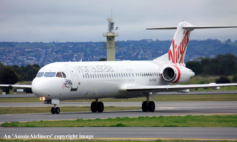 VH-FWH. Virgin Australia - in the standard livery at Adelaide West Beach Airport, August 25, 2015. (T. Haynes Copyright Image 1996-107.) |