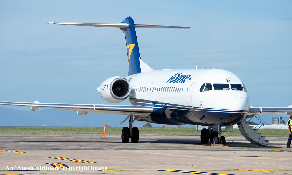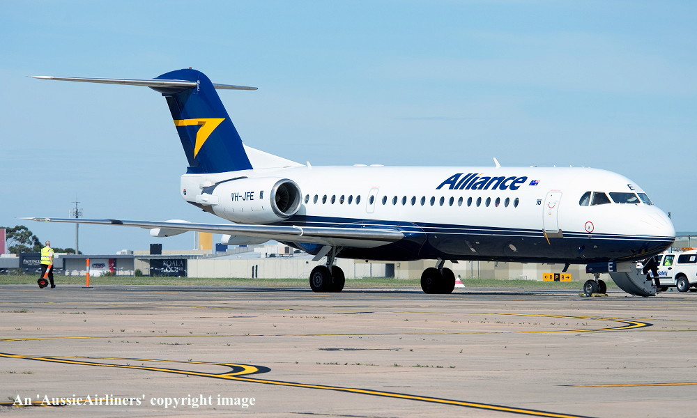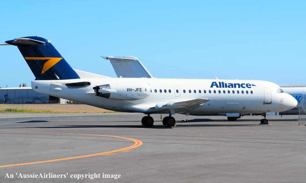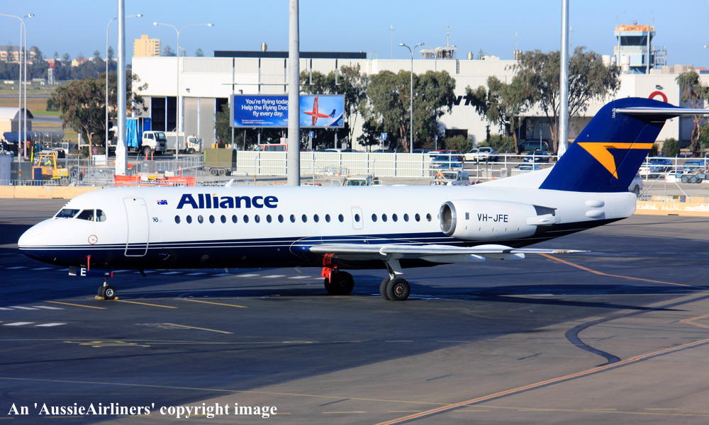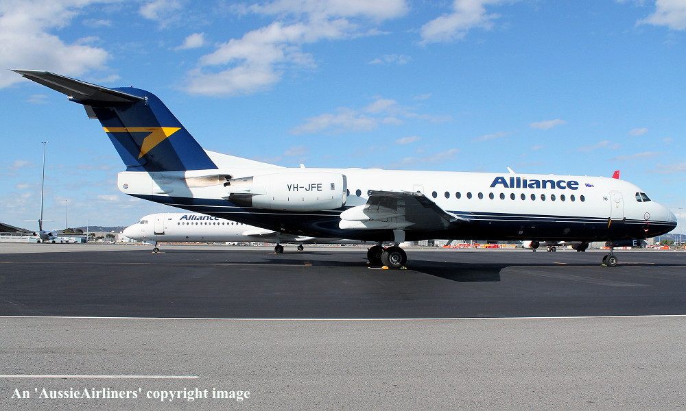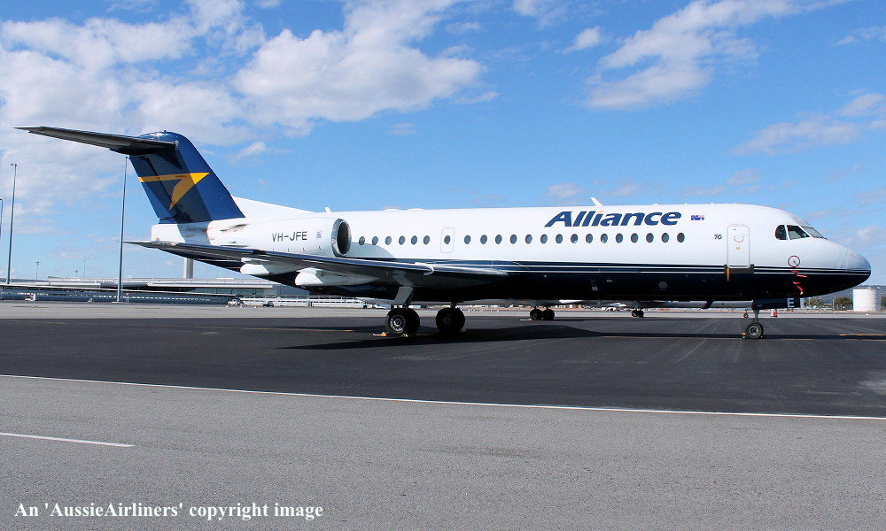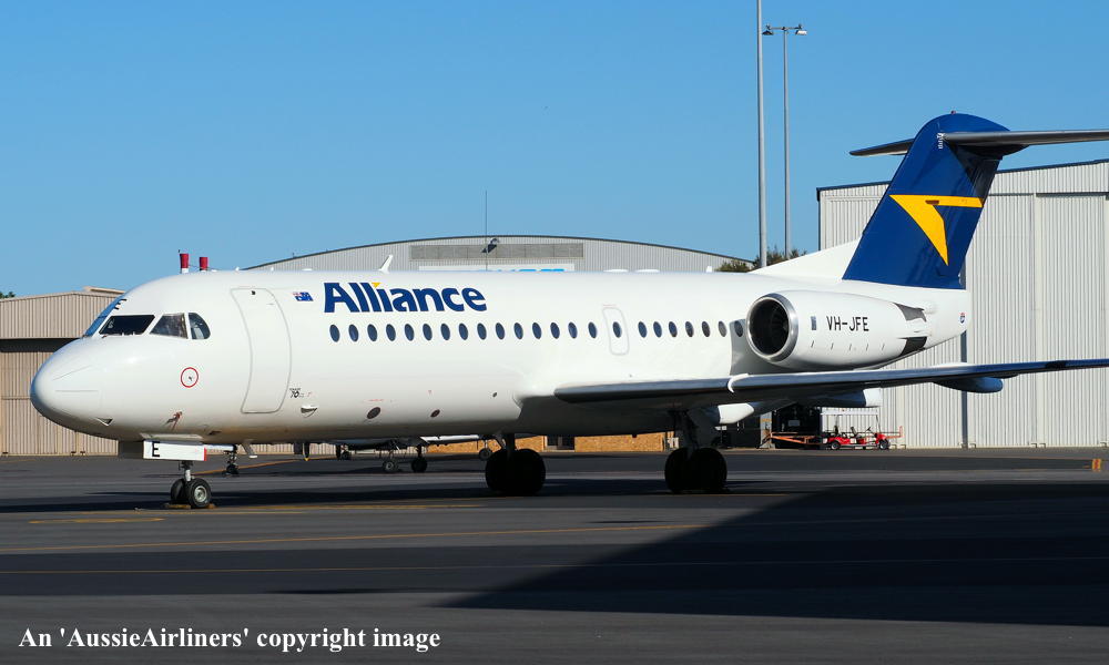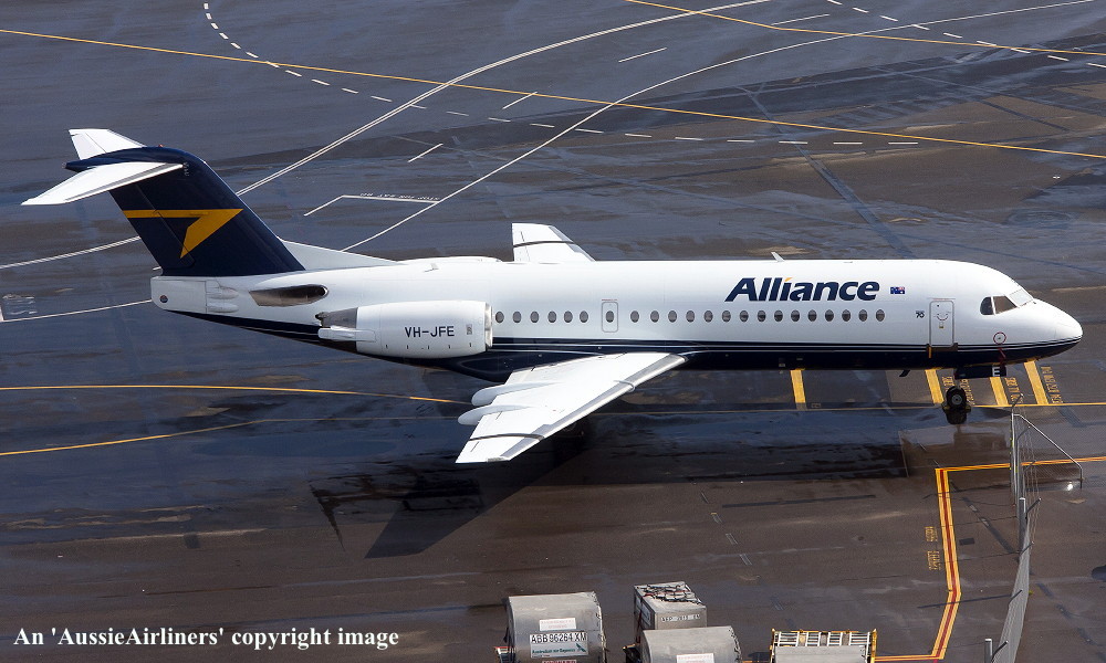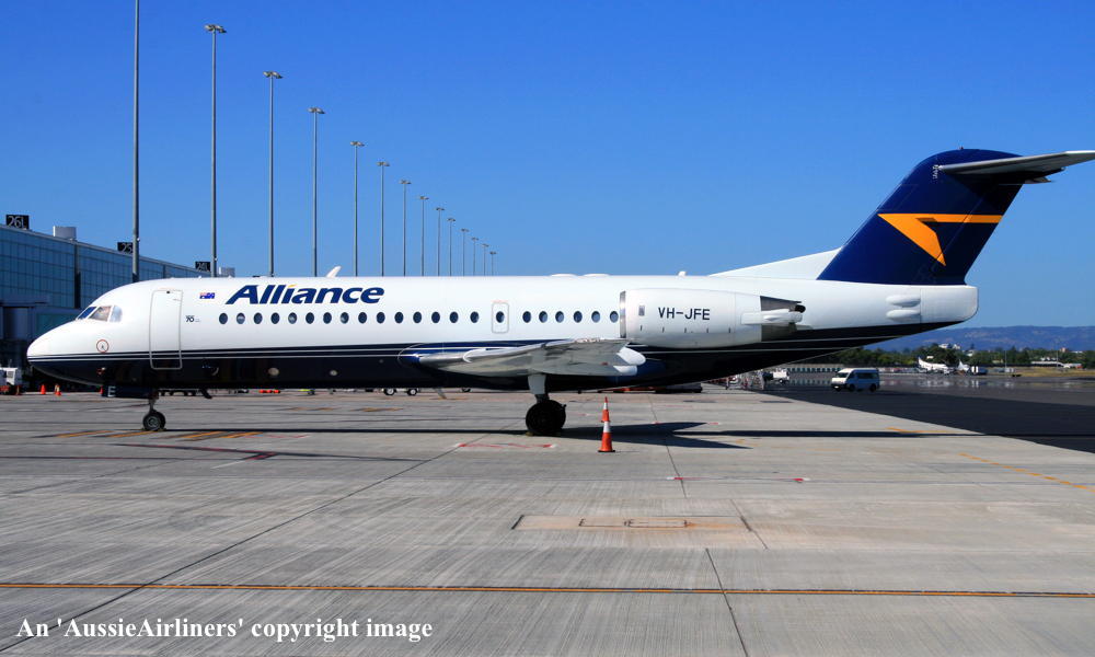 VH-JFE. Alliance - in the non-standard livery at Perth Airport, March 16, 2013. (G. Wood Copyright Image 1995-469.) |
