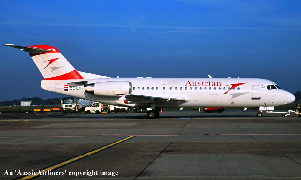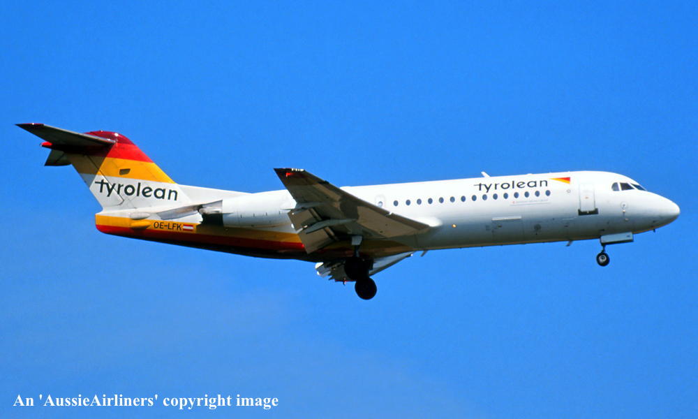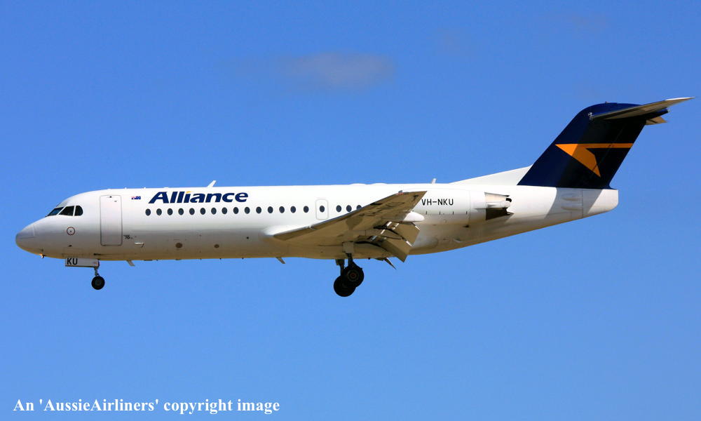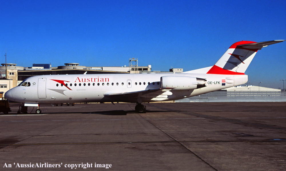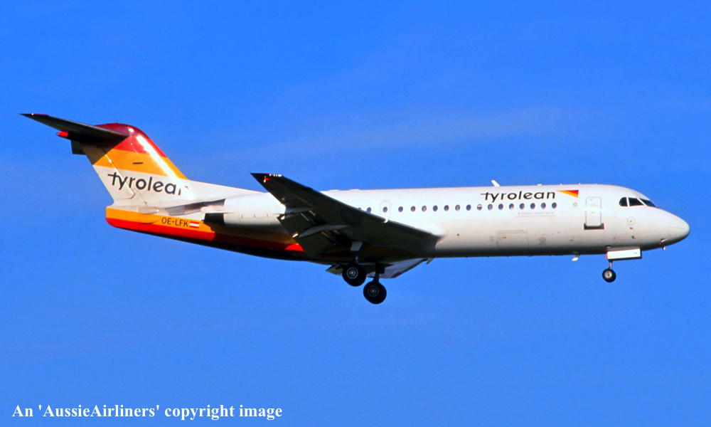 This aircraft was ordered new by Tyrolean Airway - ? The temporary export registration 'E-1415 / PH-EZP' was reserved by Fokker Aircraft B.V. - July 17, 1995 The temporary export registration 'E-1415 / PH-EZP' was applied to the aircraft - July 17, 1995 Due to a painting error the registration 'PH-EXP' was applied to the aircraft The correct registration 'PH-EZP' was applied - August 24, 1995 First flown as 'PH-EZP' in the 'Tyrolean' livery - August 24, 1995 Powered by Rolls Royce Tay 620-15 engines Entered onto the Austrian Aircraft Register as OE-LFK - August 29, 1995 Accepted by Tyrolean at Amsterdam (Schiphol) - August 29, 1995 It was cleared for export to Austria - August 29, 1995 The temporary export registration 'E-1415 / PH-EZP' was removed from the aircraft - August 30, 1995 Ferried Amsterdam (Schiphol) - Vienna on delivery to Tyrolean - August 30, 1995 The aircraft was named 'Stadt Wien' It made an emergency landing at Munich whilst engaged in the flight Vienna - Stuttgart - August 31, 1995 There were problems with the aircraft's electric system that resulted in 6 passengers being injured with one in hospital Ferried Munich - Vienna for repairs - September 02, 1995 Returned to service - September 04, 1995 The aircraft was officially christened 'Stadt Wien' - September 28, 1995 It was withdrawn from service at Vienna (Schwechat) - August 01, 2013 Ferried Cologne - Bonn for storage - July 31, 2014 Sold to Aliance Airlines - ? Overhaulled by Austrian Airlines Technik, Bratislava for delivery to Alliance Airlines Cancelled from the Austrian Aircraft Register -? Entered onto the Australian Aircraft Register as VH-NKU - February 17, 2015 Registered to Alliance Airlines Pty Limited, Eagle Farm, Brisbane Departed Slovakia (Bratislava) on the ferry flight to Australia as SXI-1516 - June 09, 2015 It arrived at Brisbane on completion of the ferry flight - June 12, 2015 The ferry flight was undertaken by Southern Cross International It was ferried Brisbane - Wellington as UTY541- January 14, 2019 It commenced a series of charter flights for Tauck Tours from Wellington - January 15, 2019 Operated its first Tauck Tour charter Wellington - Woodbourne - Te Anau - Wellington Operated its final Tauck Tours service - ? Current with Alliance Airlines |