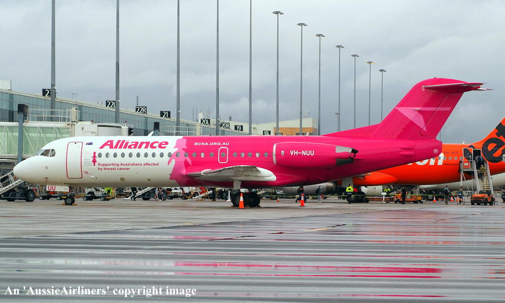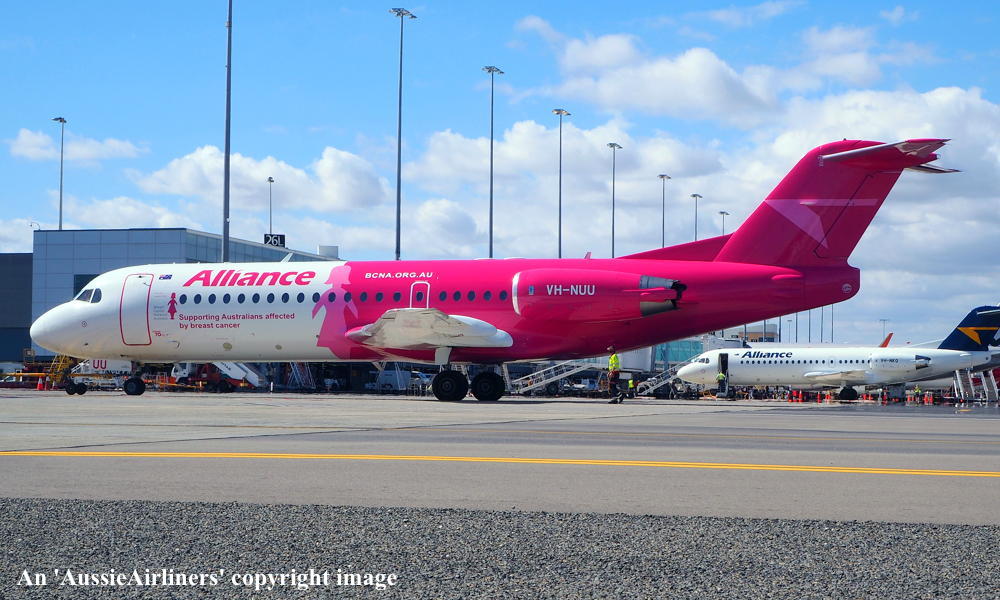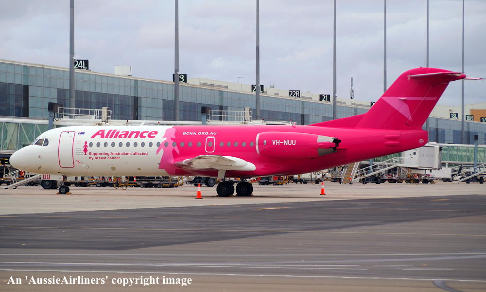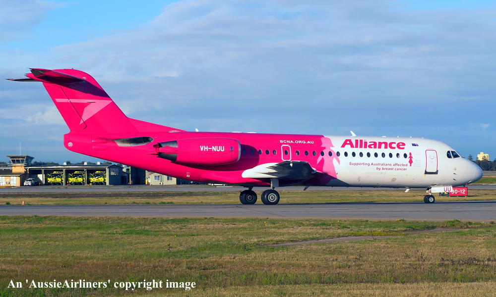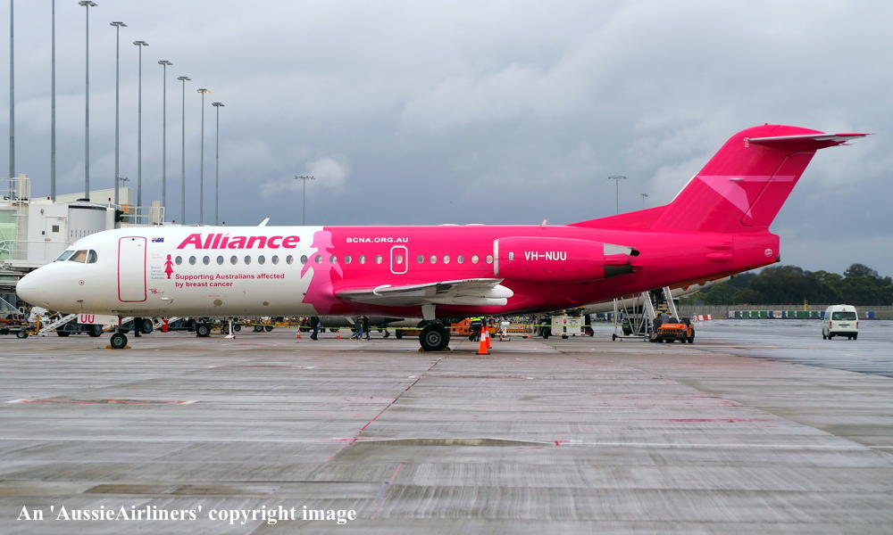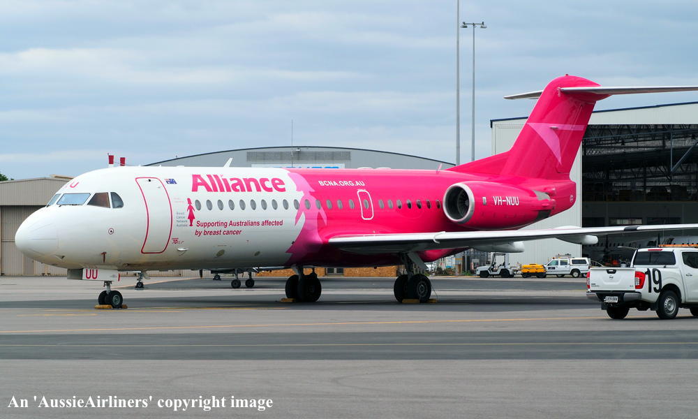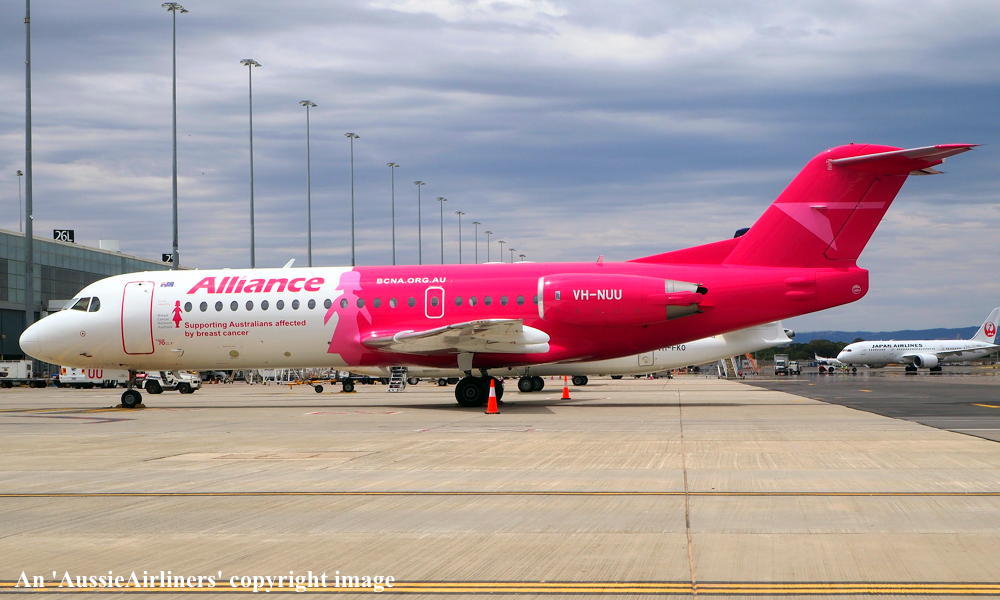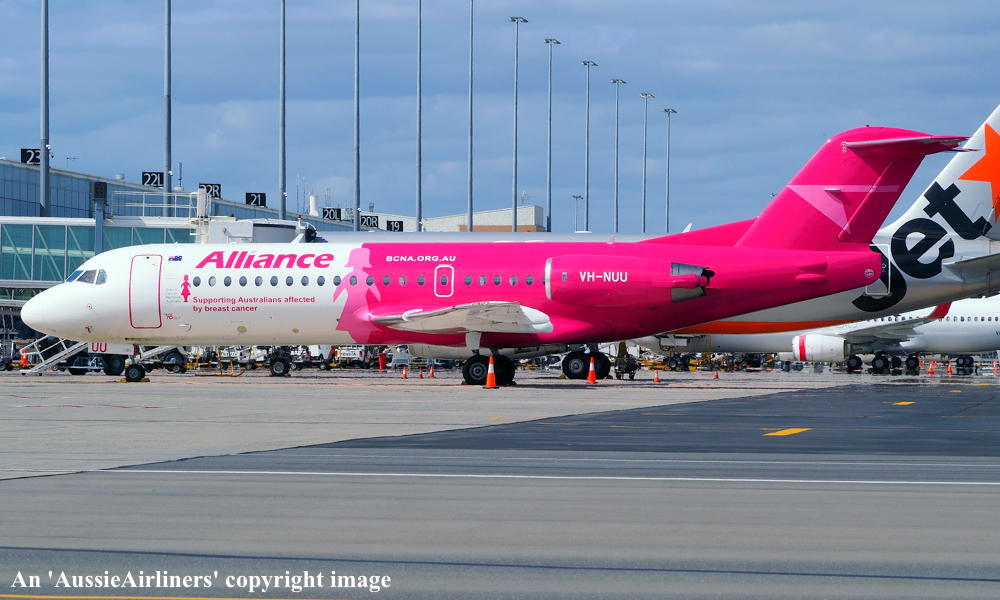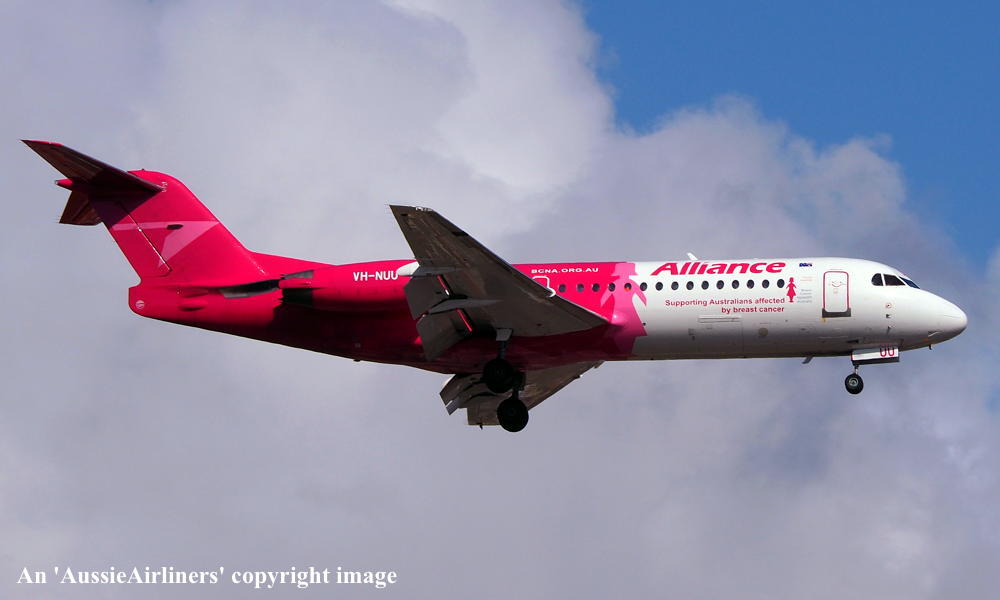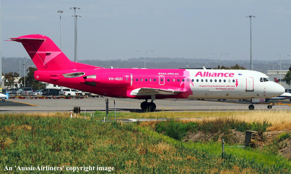 This aircraft was ordered new by Sempati Air Transport - ? The temporary export registration 'E-1389 / PH-EZR' was applied to the aircraft - February 02, 1995 The temporary export registration 'E-1389 / PH-EZR' was reserved by Fokker Aircraft B.V. - February 02, 1995 First flown as 'PH-EZR' in the Sempati Air Transport livery - February 08, 1995 Powered by Rolls Royce Tay 620-15 engines It was cleared for export to Indonesia - March 14, 1995 The temporary export registration 'E-1389 / PH-EZR' was removed from the aircraft - March 17, 1995 Entered onto the Indonesian Aircraft Register as PK-JGJ - March 17, 1995 Registered to East Midlands Aircraft Finance III BV Leased to Sempati Air Transport as the registered operator Accepted by Sempati Air Transport at Amsterdam (Schiphol) - March 17, 1995 Departed Amsterdam (Schiphol) on the ferry flight to Indonesia - March 1995 Operated its first revenue service - March 1995 It was withdrawn from service and stored - ? Cancelled from the Indonesian Aircraft Register - November 1997 Entered onto the Dutch Aircraft Register as PH-WXG - November 06, 1997 Registered to East Midlands Aircraft Finance III BV It arrived at Amsterdam (Schiphol) on completion of the ferry flight from Indonesia - November 09, 1997 Sold / leased to Tyrolean Airways - ? Cancelled from the Dutch Aircraft Register - June 06, 1998 Entered onto the Austrian Aircraft Register as OE-LFJ - June 1998 Registered to Tyrolean Airways It was ferried Woensdrecht - Vienna on delivery to Tyrolean Airways - June 12, 1998 The aircraft was named 'Graz' Tyrolean Airways was acquired by Austrian Airlines - March 1998 In an attempt to consolidate its brand 'Tyrolean Airways' was renamed 'Austrian Arrows' - 2003 Management of 'Austrian Arrows' was carried out independently from the Tyrolean base at Innsbruck The 'Austrian Arrows' livery was chosen to closely match that of the Austrian Airlines Group It was observed at Vienna in the Austrian Arrows livery - October 2003 Flights by the Austrian Airlines Group were carried out by Tyrolean Airways - July 01, 2012 This consolidation was a major effort to save Austrian Airlines from bankruptcy Tyrolean Airways flight operations were reintegrated into Austrian Airlines - October 2014 All aircraft, flight operations and crew members were transferred back to Austrian Airlines - March 31, 2015 Tyrolean Airways was then dissolved having saved Austrian Airlines from bankruptcy Operated its final Austrian Airlines revenue service - ? The aircraft was sold to Alliance Airlines Slovakia - ? The aircraft was ferried Vienna - Bratislava for storage - June 02, 2017 It was observed stored at Bratislava in the 'Austrian Arrows' livery - March 13, 2018 Ferried Bratislava - Norwich for maintenance and repainting as SXI1834 - December 10, 2018 The aircraft acquired a special 'Supporting Australians Affected By Breast Cancer' pink livery Cancelled from the Austrian Aircraft Register - ? Entered onto the Australian Aircraft Register as VH-NUU - January 02, 2019 Registered to Alliance Airlines Pty Limited, Eagle Farm, Brisbane Departed Norwich on the ferry flight to Australia as SXI1834 - August 20, 2019 It arrived at Brisbane on completion of the ferry flight - August 25, 2019 Ferry route: Norwich - Bratislava - Hurghada - Al Ain - Nagpur - Subang - Kupang - Townsville - Brisbane Operated its first revenue service Brisbane - Maroochydore - Emerald as UTY4078 - September 02, 2019 Current with Alliance |