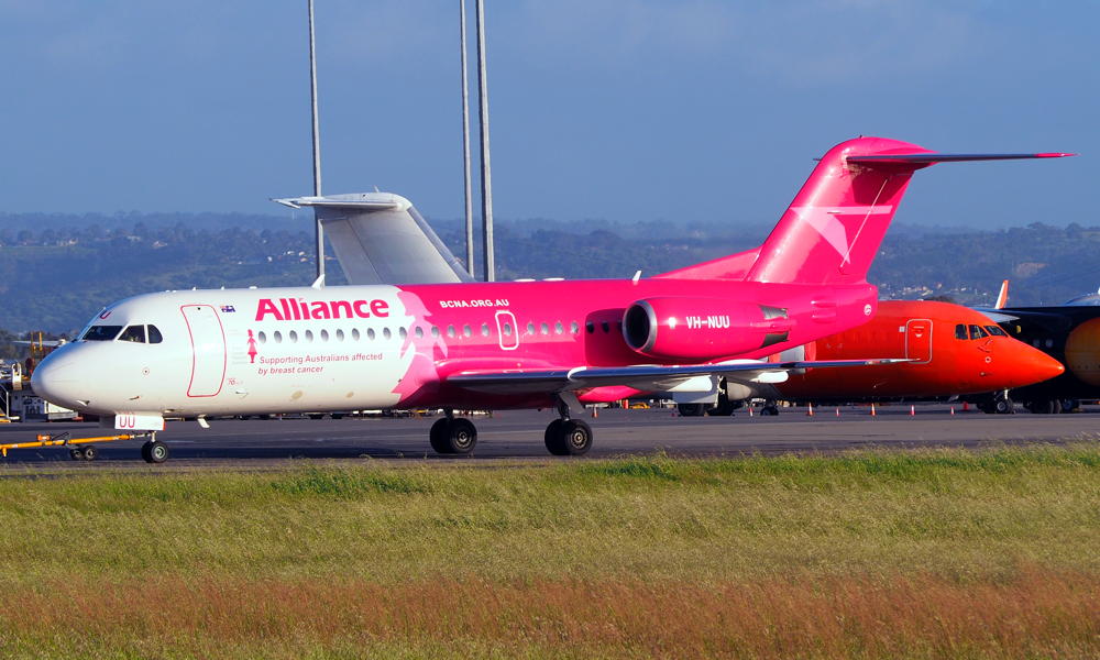 VH-NUU. Alliance - in the 'Breast Cancer' livery at Adelaide West Beach Airport, October 16, 2020. (T. Haynes Copyright Image 1996-045.) |