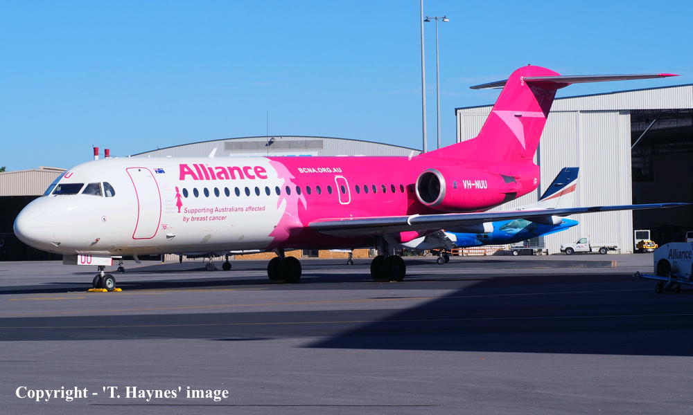 VH-NUU. Alliance - in the 'Breast Cancer' livery at Sunshine Coast Airport, September 09, 2019. (J. Colavecchio Copyright Image 1995-965.) |