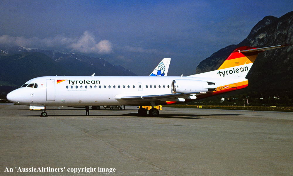 OE-LFH. Tyrolean - 'Stadt Salzburg' in the standard livery at an unknown airport, date unknown. (R. N. Smith Collection Copyright Image 1996-272.) |