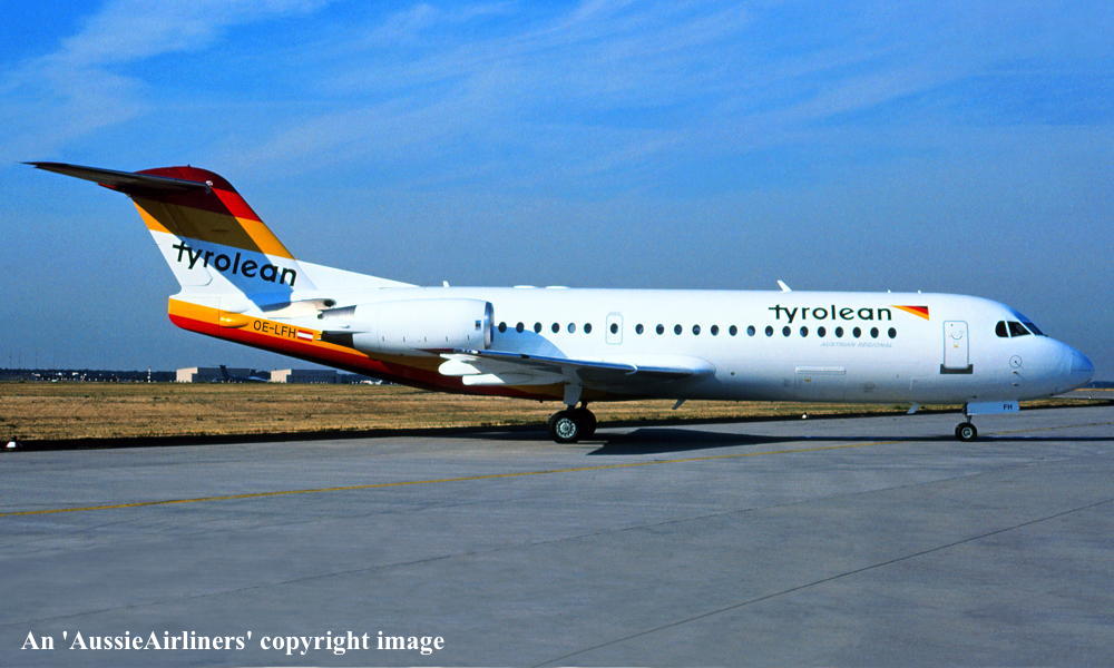 This aircraft was ordered new by International Lease Finance Corporation - ? The temporary export registration 'E-1412 / PH-EZN' was applied to the aircraft - June 22, 1995 The temporary export registration 'E-1412 / PH-EZN' was reserved by Fokker Aircraft B.V. - June 23, 1995 First flown as 'PH-EZN' in the 'Tyrolean' livery - August 04, 1995 Powered by Rolls Royce Tay 620-15 engines It was cleared for export to Austria - August 11, 1995 The temporary export registration 'E-1412 / PH-EZN' was removed from the aircraft - August 11, 1995 Entered onto the Austrian Aircraft Register as OE-LFH - August 11, 1995 Registered to ? Accepted by Tyrolean Airways at Amsterdam (Schiphol) - August 11, 1995 Departed Amsterdam (Schiphol) on the ferry flight to Salzburg - August 11, 1995 The aircraft was named 'Stadt Salzburg' Operated its first revenue service Salzburg - Frankfurt - August 11, 1995 Tyrolean Airways was acquired by Austrian Airlines - March 1998 In an attempt to consolidate its brand 'Tyrolean Airways' was renamed 'Austrian Arrows' - 2003 Management of 'Austrian Arrows' was carried out independently from the Tyrolean base at Innsbruck The 'Austrian Arrows' livery was chosen to closely match that of the Austrian Airlines Group It was observed at Salzburg in the Austrian Arrows livery - December 05, 2004 Flights by the Austrian Airlines Group were carried out by Tyrolean Airways - July 01, 2012 This consolidation was a major effort to save Austrian Airlines from bankruptcy Tyrolean Airways flight operations were reintegrated into Austrian Airlines - October 2014 All aircraft, flight operations and crew members were transferred back to Austrian Airlines - March 31, 2015 Tyrolean Airways was then dissolved having saved Austrian Airlines from bankruptcy Operated its final Austrian Airlines revenue service - ? The aircraft was sold to Alliance Airlines Slovakia - ? The aircraft was ferried Vienna - Bratislava for storage - August 23, 2016 Ferried Bratislava - Norwich for maintenance and repainting - November 05, 2018 Cancelled from the Austrian Aircraft Register - ? Entered onto the Australian Aircraft Register as VH-NUV - November 14, 2018 Registered to Alliance Airlines Pty Limited, Eagle Farm, Brisbane Current status - ? |