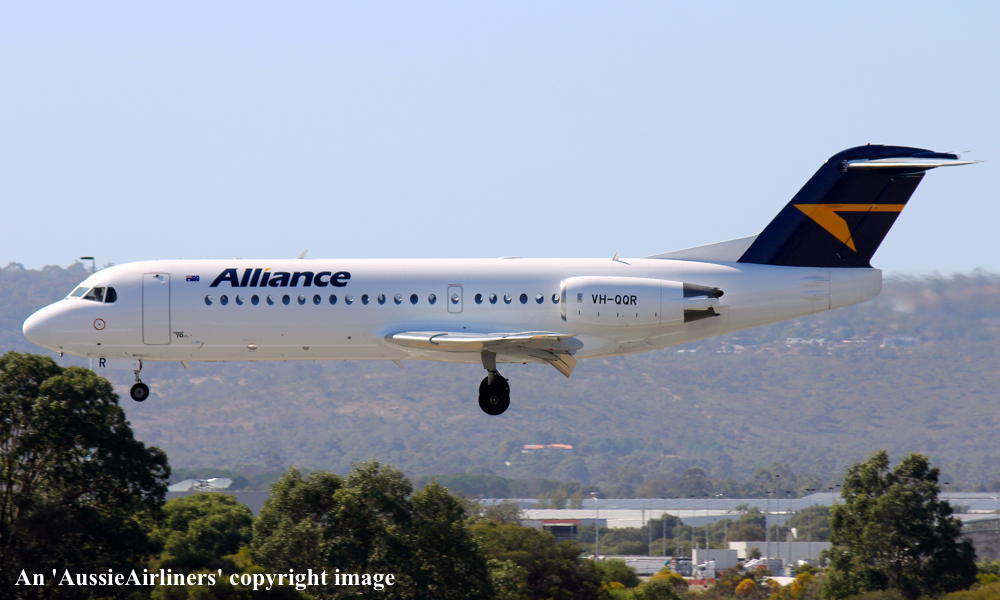 VH-QQR. Alliance - in the standard livery at Perth Airport, March 28, 2013. (M. Lynam Copyright Image 1995-513.) |