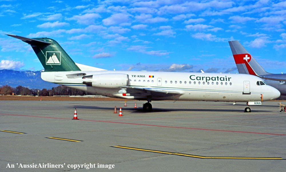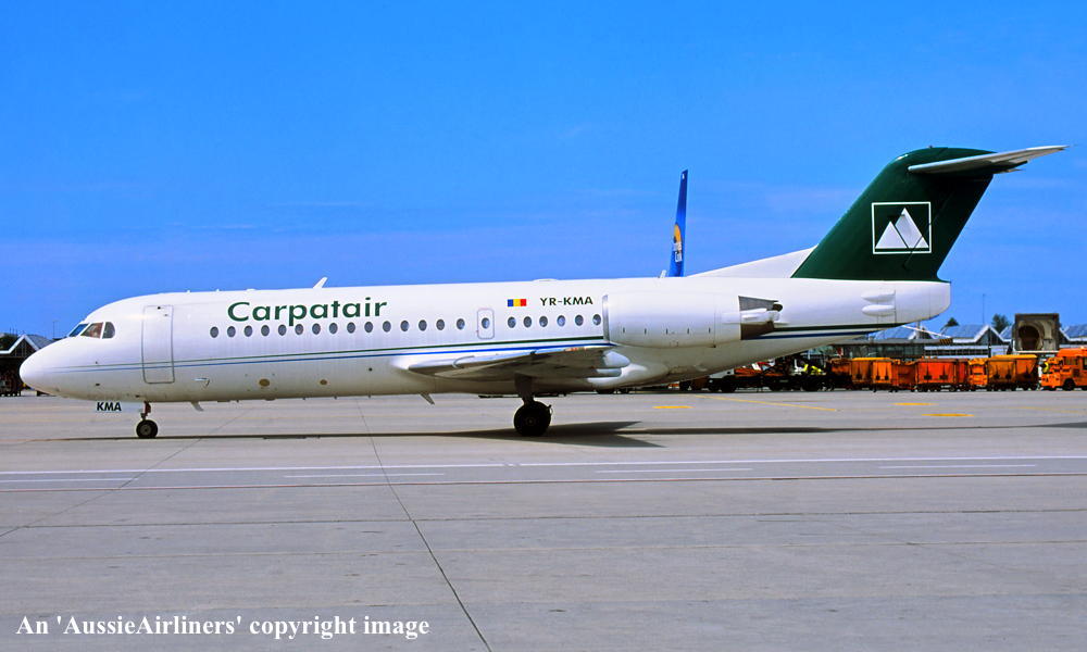 YR-KMA. Carpatair - in the standard livery at an unknown airport, date unknown. (R. N. Smith Collection Copyright Image 1996-072.) |