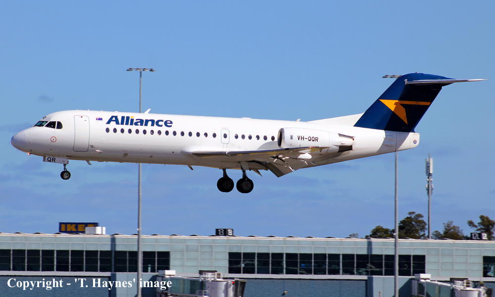 VH-QQR. Fokker F28-070. c/n 11564. Was also registered as: HA-LMA; YR-KMA. |