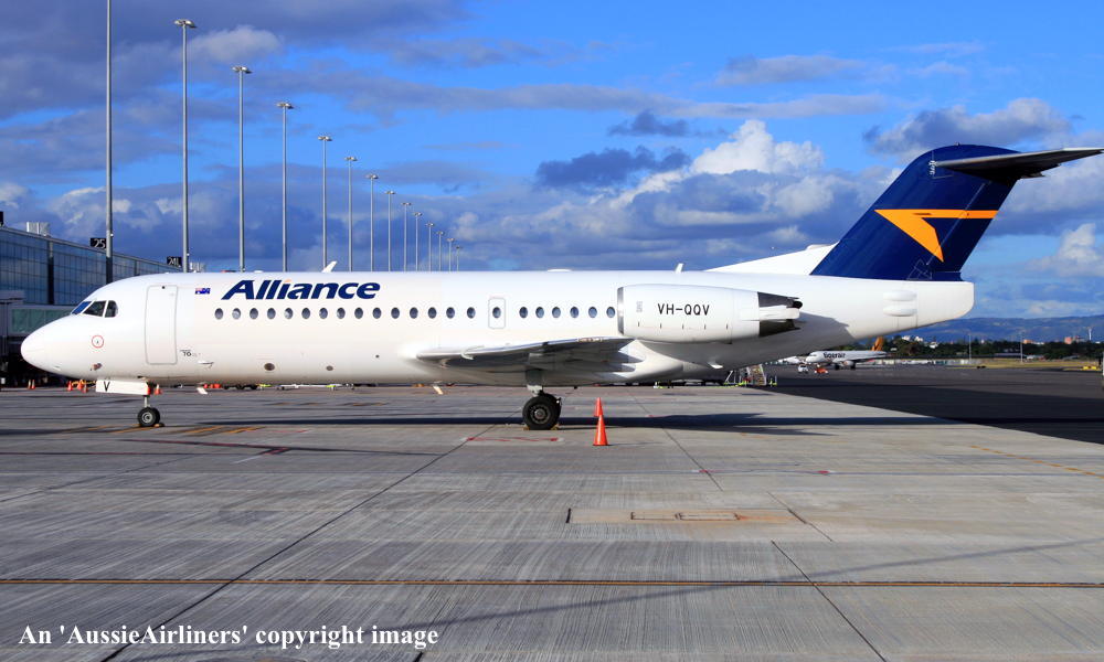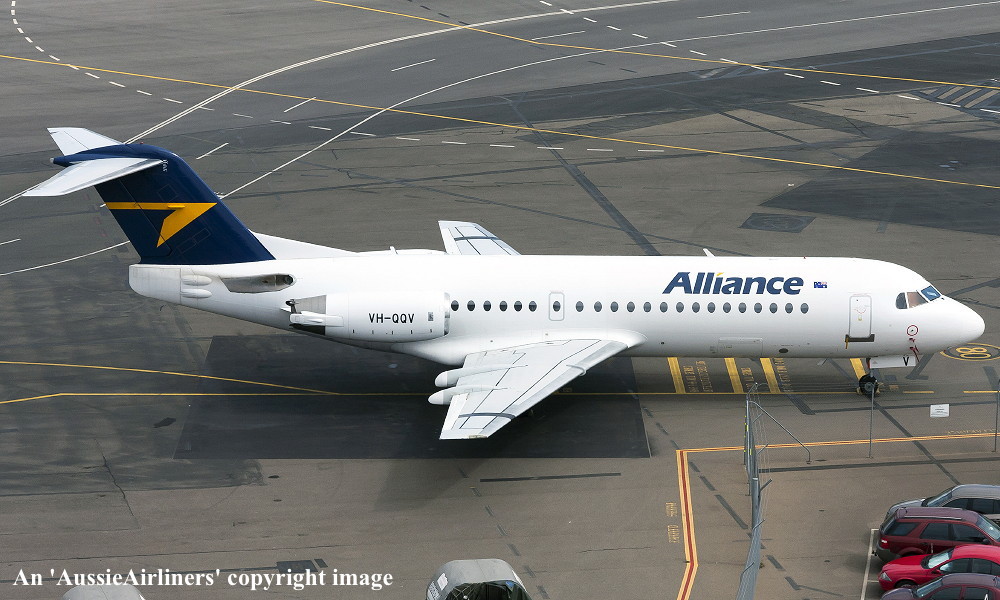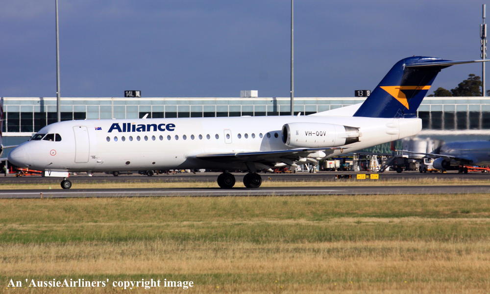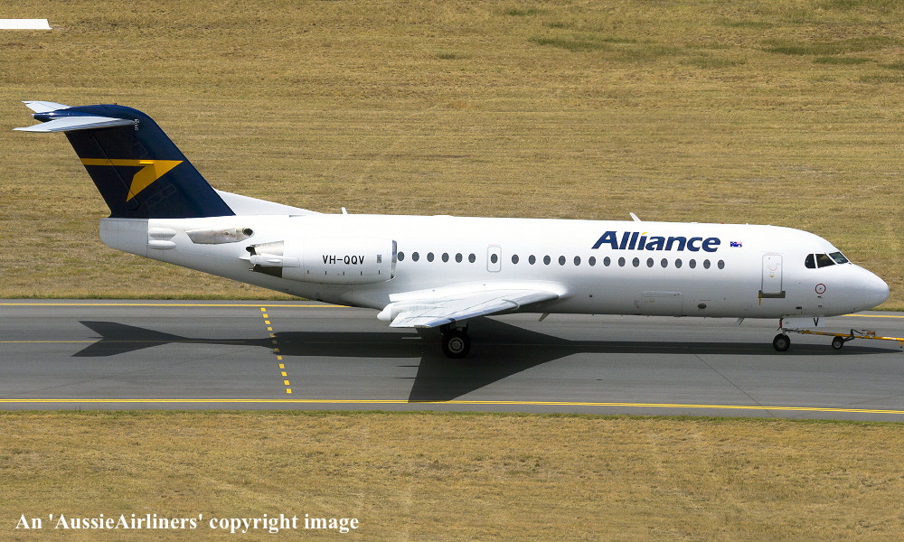 VH-QQV. Fokker F28-070. c/n 11565. Was also registered as: HA-LMB; YR-KMB. |