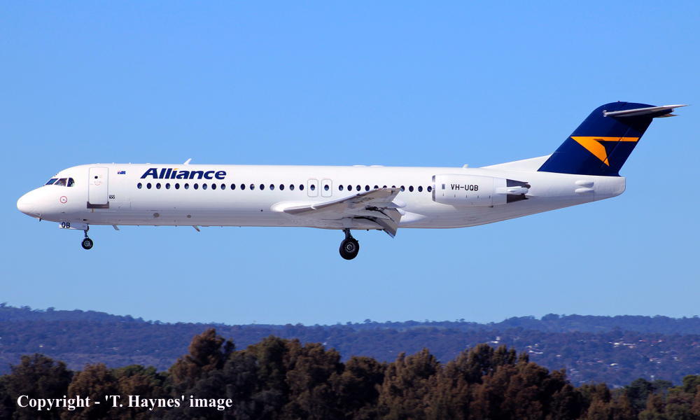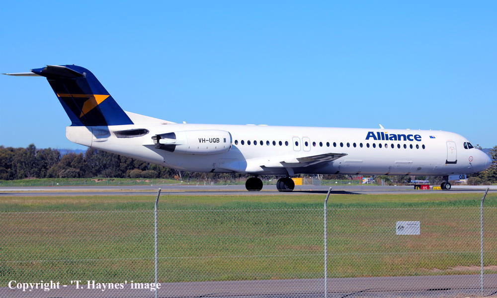 This aircraft was ordered new by American Airlines - ? The registration 'N1463A' was reserved by American Airlines - September 16, 1988 The temporary export registration 'E-1305 / PH-EZF' was applied to the aircraft - August 05, 1993 The temporary export registration 'E-1305 / PH-EZF' was reserved by Fokker Aircraft B.V. - August 09, 1993 The temporary export registration 'E-1305 / PH-EZF' was removed from the aircraft - November 15, 1993 The Dutch registration 'PH-JCD' was applied to the aircraft - November 19, 1993 Registered to Fokker Aircraft BV, Amsterdam BvL 4796 First flown as 'PH-JCD' in the 'American Airlines' livery - December 07, 1993 Powered by Rolls Royce Tay 650-15 engines Ferried Amsterdam (Schiphol) - Woensdrecht - December 23, 1993 Entered onto the Dutch Aircraft Register as PH-JCD - December 29, 1993 Registered to Fokker Aircraft BV, Amsterdam BvL 4796 Ferried Woensdrecht - Amsterdam (Schiphol) - January 18, 1994 This aircraft was cleared for export to the United States - January 18, 1994 The Dutch registration 'PH-JCD' was removed from the aircraft - January 18, 1994 Cancelled from the Dutch Aircraft Register - January 18, 1994 Entered onto the United States Aircraft Register as N1463A - January 18, 1994 Accepted by American Airlines at Amsterdam (Schiphol) - January 19, 1994 Departed Amsterdam (Schiphol) on the delivery flight to the United States via Keflavik as AAL9499 - January 20, 1994 Operated its first revenue service Chicago (O'Hare) - Rochester - January 22, 1994 Operated its final revenue service - September 2004 Sold to Wells Fargo Bank Northwest - 2004 Registered to Wells Fargo Bank Northwest It arrived at Woensdrecht on completion of the ferry flight for overhaul - September 09, 2004 Cancelled from the United States Aircraft Register - September 09, 2004 The Dutch registration 'PH-ZFI' was reserved by Fokker Services - October 01, 2004 Entered onto the Dutch Aircraft Register as PH-ZFI - December 07, 2004 Registered to Wells Fargo Bank Northwest The aircraft was prepared for lease to Austrian Airlines Cancelled from the Dutch Aircraft Register - December 22, 2004 Entered onto the Austrian Aircraft Register as OE-LVF - December 2004 Leased to Austrian Arrows as the registered operator The aircraft was named 'Yerevan' Tyrolean Airways was acquired by Austrian Airlines - March 1998 In an attempt to consolidate its brand 'Tyrolean Airways' was renamed 'Austrian Arrows' - 2003 Management of 'Austrian Arrows' was carried out independently from the Tyrolean base at Innsbruck The 'Austrian Arrows' livery was chosen to closely match that of the Austrian Airlines Group Flights by the Austrian Airlines Group were carried out by Tyrolean Airways - July 01, 2012 This consolidation was a major effort to save Austrian Airlines from bankruptcy Tyrolean Airways flight operations were reintegrated into Austrian Airlines - October 2014 All aircraft, flight operations and crew members were transferred back to Austrian Airlines - March 31, 2015 Tyrolean Airways was then dissolved having saved Austrian Airlines from bankruptcy Operated its final revenue service - August 27, 2017 Ferried Vienna - Bratislava for overhaul - September 05, 2017 Sold to Alliance Airlines, Australia It was observed at Bratislava in the Austrian Airlines livery - March 28, 2018 Entered onto the Australian Aircraft Register as VH-UQB - March 28, 2018 Registered to Alliance Airlines Pty Ltd, Brisbane Test flown Bratislava - Bratislava as'VH-UQB' - September 24, 2018 Departed Bratislava on the ferry flight to Australia as SXI1808 - September 25, 2018 It arrived at Brisbane on completion of the ferry flight in the 'Alliance' livery - September 29, 2018 Delivery route: Bratislava - Trabzon - Al Ain- Nagpur - Kuala Lumpur - Koepang - Townsville - Brisbane Operated its first revenue service Brisbane - ? Current with Alliance Airlines |