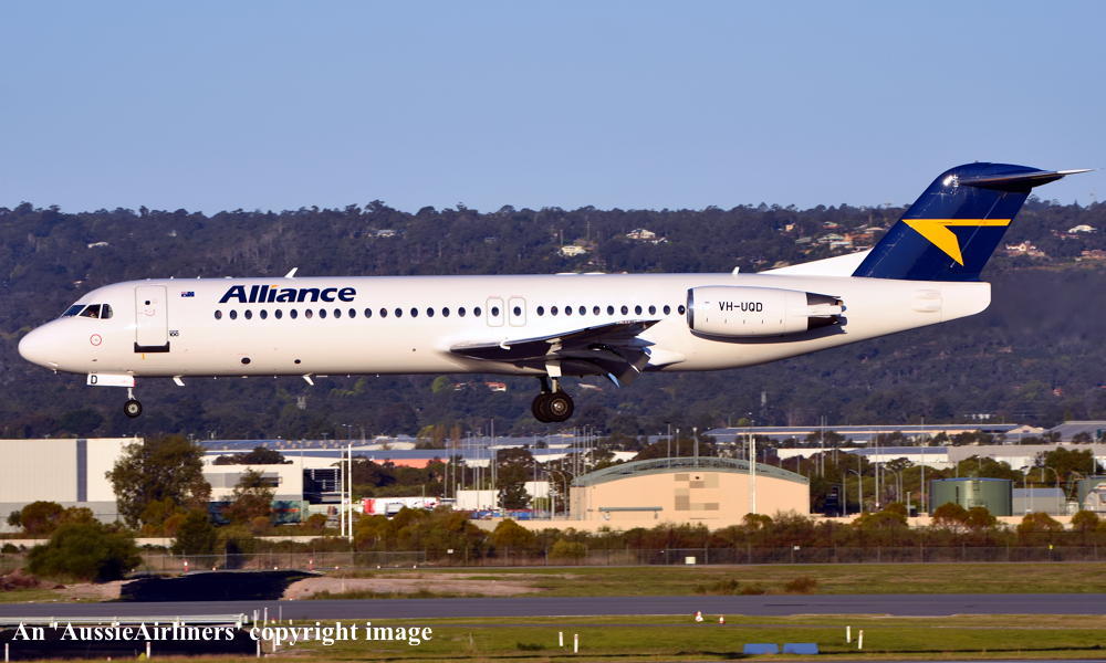 VH-UQD. Fokker F28-0100. c/n 11460. Was also registered as: N1451N; HB-JVA; OM-ACC; PH-ZFS; OE-LVO. |
