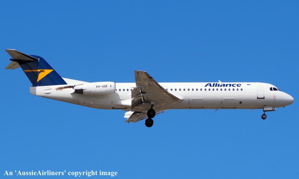 This aircraft was ordered new by American Airlines - March 1991 It was part of an order for 75 aircraft with an option on another 75 airframes The temporary export registration 'E-1265 / PH-EZA' was applied to the aircraft - April 07, 1993 The temporary export registration 'E-1265 / PH-EZA' was reserved by Fokker Aircraft B.V. - April 08, 1993 First flown as 'PH-EZA' in American Airlines livery - May 07, 1993 Powered by Rolls Royce Tay 650-15 engines Ferried Amseterdam (Schiphol) - Woensdrecht for modifications to the hydraulic system - May 18, 1993 The temporary export registration 'E-1265 / PH-EZA' was removed from the aircraft - May 18, 1993 It was cleared for export to the United States - May 18, 1993 Ferried Woensdrecht - Amsterdam (Schiphol) - June 12, 1993 Entered onto the United States Aircraft Register as N1447L - June 1993 Registered to American Airlines Inc Accepted by American Airlines at Amsterdam (Schiphol) - June 13, 1993 Departed Amsterdam (Schiphol) on the ferry flight to the United States via Keflavik - June 13, 1993 Operated its first revenue service Dallas (Fort Worth) - Cincinatti - June 16, 1993 The aircraft had flown 96 hours with 74 cycles - June 30, 1993 Operated its final American Airlines revenue service Newark - Chicago - May 31, 2004 It arrived at Mojave for storage - June 02, 2004 Sold to Wells Fargo Bank Northwest - September 16, 2004 It arrived at Woensdrecht on completion of the ferry flight to Holland - November 15, 2004 Cancelled from the United States Aircraft Register - November 16, 2004 Entered onto the Dutch Aircraft Register as PH-ZFK - December 07, 2004 Registered to Fokker Services BvL 6658 The aircraft was test flown Wonsdrecht - Wonsdrecht in the 'Austrian Arrows' livery - April 04, 2005 Departed Wonsdrecht on delivery to Austrian Arrows - April 06, 2005 Cancelled from the Dutch Aircraft Register - April 07, 2005 Entered onto the Austrian Aircraft Register as OE-LVH - April 07, 2005 Leased to Austrian Airlines as the registered operator The aircraft was named 'Minsk' Tyrolean Airways was acquired by Austrian Airlines - March 1998 In an attempt to consolidate its brand 'Tyrolean Airways' was renamed 'Austrian Arrows' - 2003 Management of 'Austrian Arrows' was carried out independently from the Tyrolean base at Innsbruck The 'Austrian Arrows' livery was chosen to closely match that of the Austrian Airlines Group Flights by the Austrian Airlines Group were carried out by Tyrolean Airways - July 01, 2012 This consolidation was a major effort to save Austrian Airlines from bankruptcy Tyrolean Airways flight operations were reintegrated into Austrian Airlines - October 2014 All aircraft, flight operations and crew members were transferred back to Austrian Airlines - March 31, 2015 Tyrolean Airways was then dissolved having saved Austrian Airlines from bankruptcy Withdrawn from use at Vienna - ? Sold to Alliance Airlines, Slovakia - Cancelled from the Austrian Aircraft Register - February 05, 2017 Entered onto the Australian Aircraft Register as VH-UQF - May 25, 2018 Registered to Alliance Airlines Pty Ltd, Brisbane Departed Bratislava on the ferry flight to Australia as SXI1821 - December 10, 2018 It arrived at Brisbane on completion of the ferry flight to Australia - December 14, 2018 Operated its first revenue service Brisbane - Rockhampton for Virgin Australia as VOZ1243 - December 26, 2018 Current with Alliance |