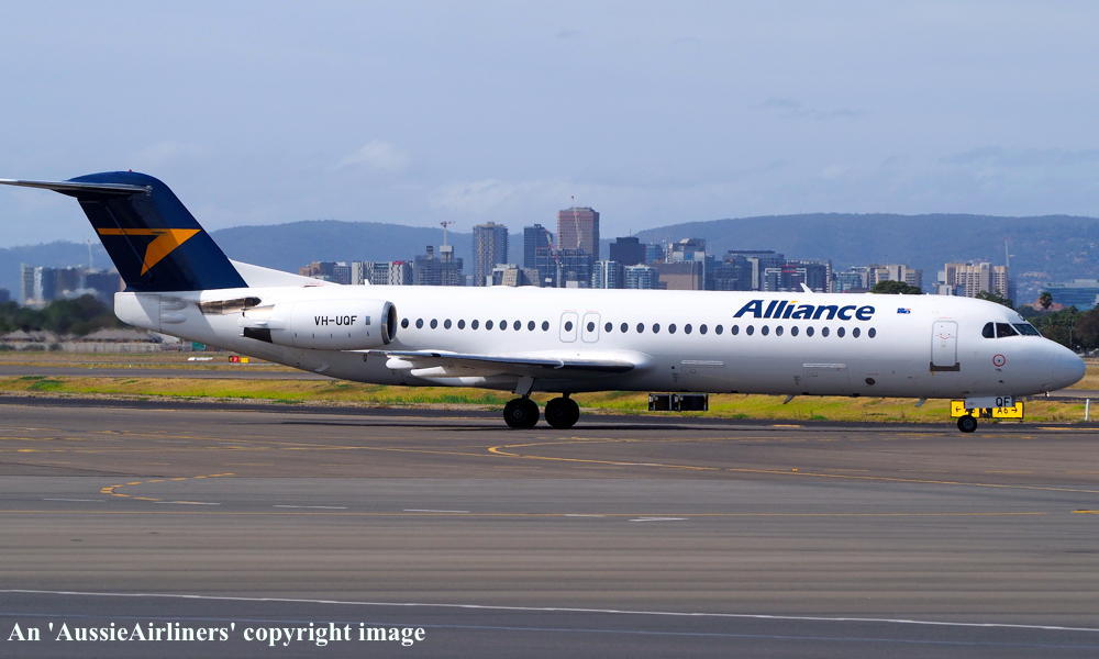 VH-UQF. Fokker F28-0100. c/n 11456. Was also registered as: N1447L; PH-ZFK; OE-LVH. |