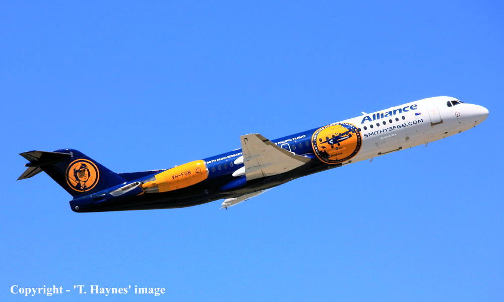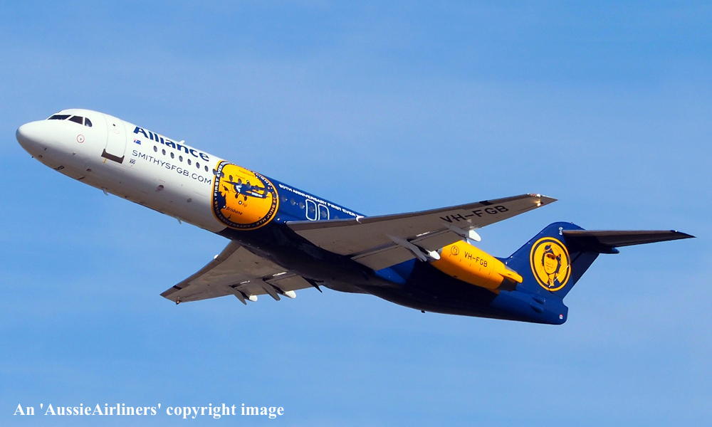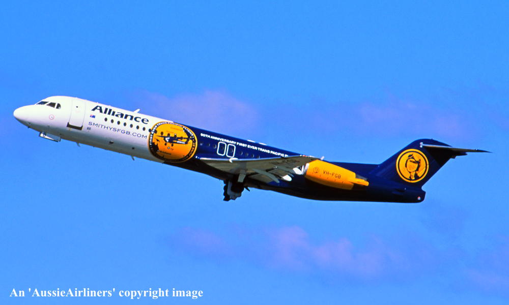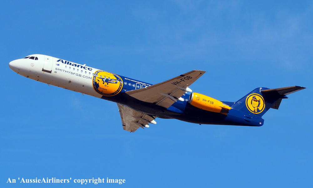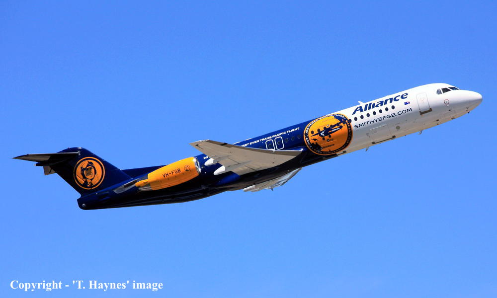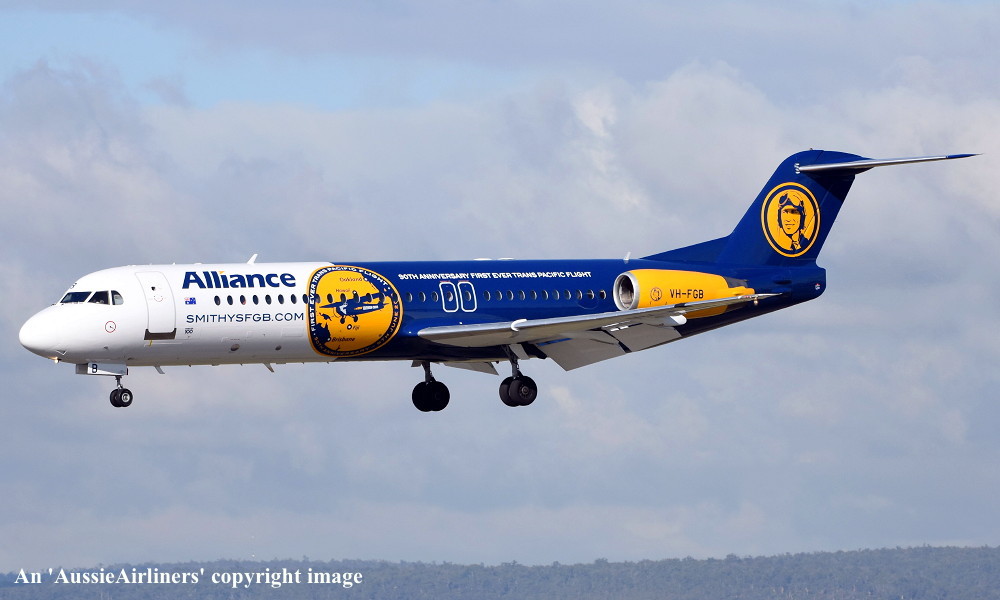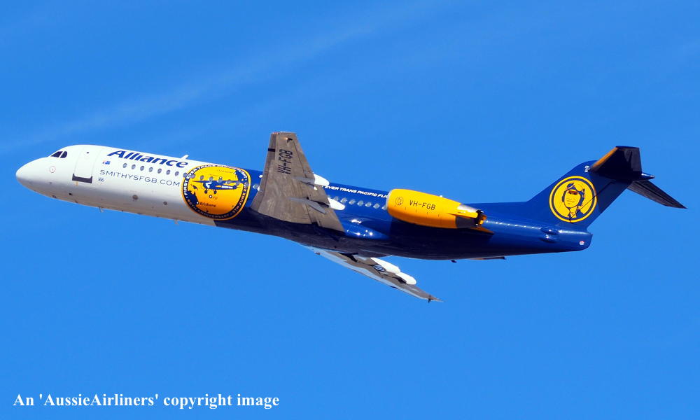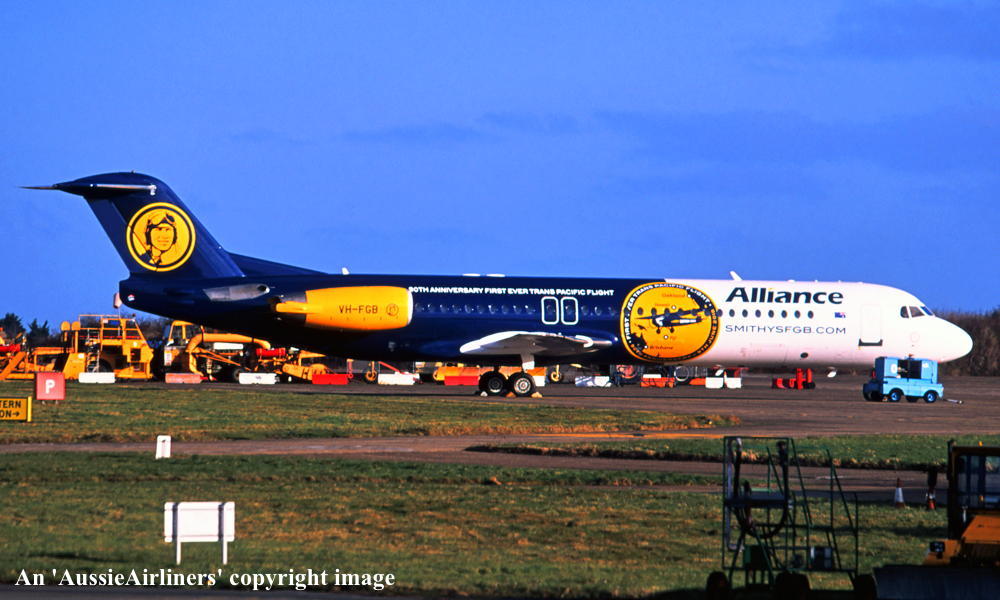This aircraft was ordered new by American Airlines - ? The American registration 'N1443A' was reserved by American Airlines - September 16, 1988 The temporary export registration 'E-1249 / PH-EZN' was applied to the aircraft - January 29, 1993 The temporary export registration 'E-1249 / PH-EZN' was reserved by Fokker Aircraft B.V. - February 01, 1993 First flown as 'PH-EZN' in the American Airlines livery - February 10, 1993 Powered by Rolls Royce Tay 650-15 engines Ferried Amsterdam (Schiphol) - Woensdrecht for hydraulic systems modification - March 19, 1993 Certificate of Airworthiness (CofA) issued - March 22, 1993 The aircraft was cleared for export to the United States - March 22, 1993 The temporary export registration 'E-1249 / PH-EZN' was removed from the aircraft - March 23, 1993 Entered onto the United States Aircraft Register as N1443A - March 1993 Registered to Fokker Aircraft N1443A Trust c/- Wilmington Trust, Wilmington, Delaware, USA Leased to American Airlines Inc as the registered operator Departed Amsterdam (Schiphol) on the ferry flight to the United States - April 1993 Operated its first revenue service Chicago (O'Hare) - Columbus - April 22, 1993 It had flown 433 hours with 401 cycles - June 30, 1993 Operated its last revenue service - ? Ferried Chicago (O'Hare) - Mojave for storage - March 18, 2004 Registered to Wells Fargo Bank Northwest Trustee - March 18, 2004 The aircraft arrived at Woensdrecht in the 'American Airlines' livery for maintenance - April 16, 2004 Cancelled from the United States Aircraft Register - April 16, 2004 The Dutch registration 'PH-ZFF' was reserved by Fokker Services BV - May 04, 2004 It was observed stored at Woensdrecht in the 'American Airlines' livery awaiting overhaul - April 16, 2004 The Dutch registration 'PH-ZFF' was reserved by Fokker Services BV - May 04, 2004 It was observed at Woensdrecht in the 'Austrian Arrows' livery as 'OE-LVC' - August 07, 2004 Entered onto the Dutch Aircraft Register as PH-ZFF - August 20, 2004 Registered to Fokker Services BV BvL 6619 Cancelled from the Dutch Aircraft Register - September 02, 2004 Entered onto the Austrian Aircraft Register as OE-LVC - September 02, 2004 Registered to Fokker Services BV BvL 6619 Leased to Austrian Arrows as the registered operator The aircraft was named 'Tirana' Withdrawn from use at Vienna - 2017 Ferried Vienna - Bratislava for storage - January 24, 2017 Sold to Alliance Airlines Pty Ltd - ? Cancelled from the Austrian Aircraft Register - July 2017 Entered onto the Australian Aircraft Register as VH-UQG - July 24, 2017 Registered to Alliance Airlines Pty Ltd, Eagle Farm, Brisbane It was observed at Bratislava undergoing maintenance - July 24, 2017 Ferried Bratislava - Norwich for repainting - October 08, 2017 It was observed at Norwich in the basic 'Austrian Arrows' livery - November 17, 2017 Reregistered as VH-FGB - December 15, 2017 Registered to Alliance Airlines Pty Ltd, Eagle Farm, Brisbane Rolled out at Norwich in the special livery to celebrate the 90th Anniversary of the crossing of the Pacific Ocean This feat was successfully completed by Charles Kingsford Smith in the Fokker tri-motor 'Southern Cross' The 'Smithys FGB' title refers to a commemorative beer that will be offered on Alliance flights Departed Norwich on the delivery flight to Australia as SXI1801 - January 14, 2018 It arrived at Brisbane on completion of the delivery flight from the United Kingdom - January 18, 2018 Ferry route: Norwich - Trabzon - Al Ain - Hyderbad - Kuala Lumpur (Subang) - Kupang - Townsville - Brisbane Operated its first revenue service Brisbane - Alice Springs (The Granites) as UTY371 - January 18, 2018 Operated a special re-enactment flight Brisbane - Brisbane as 'Alliance 990' - June 09, 2018 This flight was to mark the completion of the historic trans-Pacific crossing by Charles Kingsford Smith The aircraft departed from Brisbane to the north-east and returned at 10:50 local This landing was to the minute to mark the exact touchdown of the 'Southern Cross' on June 09, 1928 Current with Alliance Airlines |