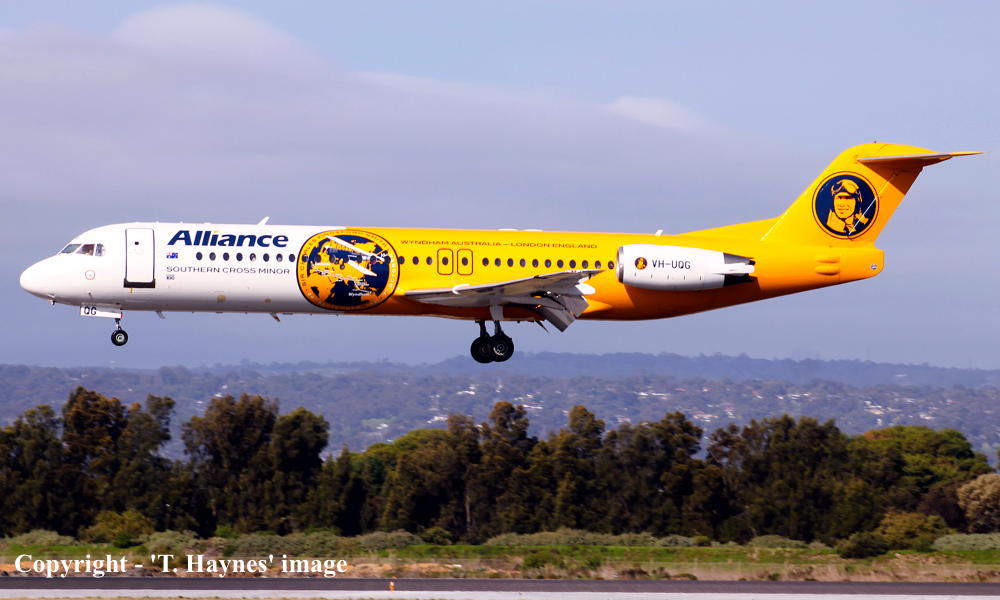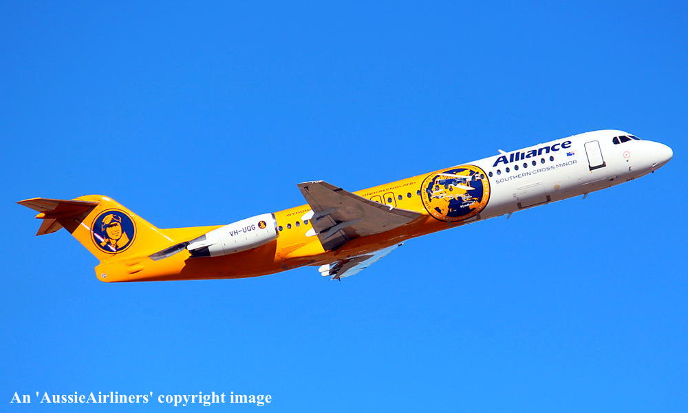 VH-UQG. Fokker F28-0100. c/n 11520. Was also registered as: N1474D; PH-ZFJ; OE-LVG. |