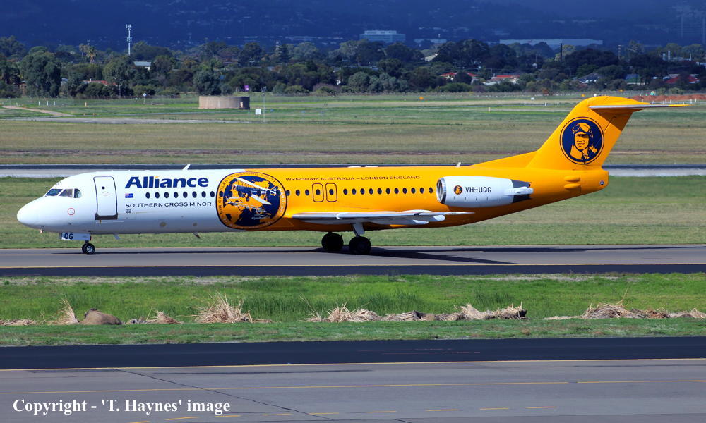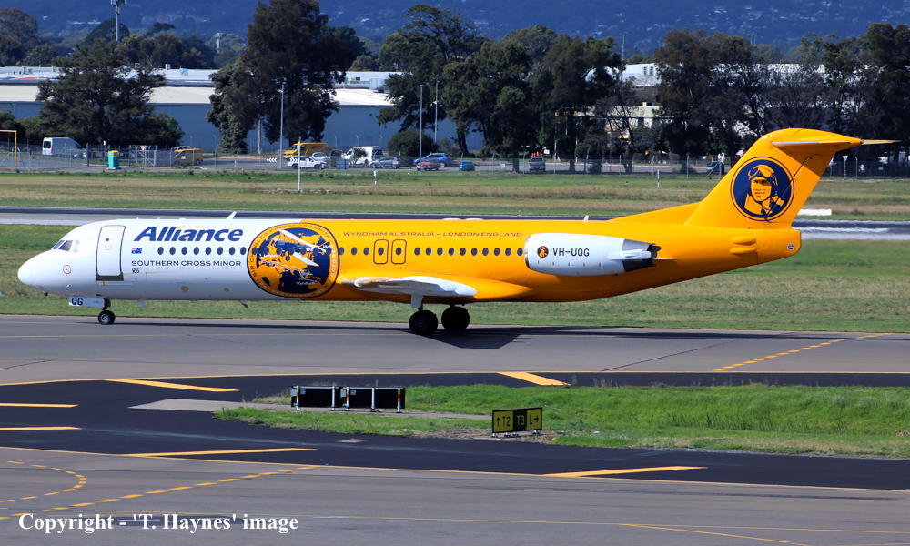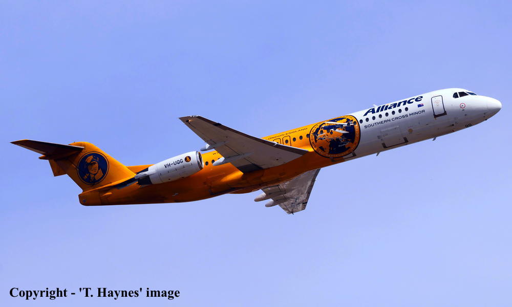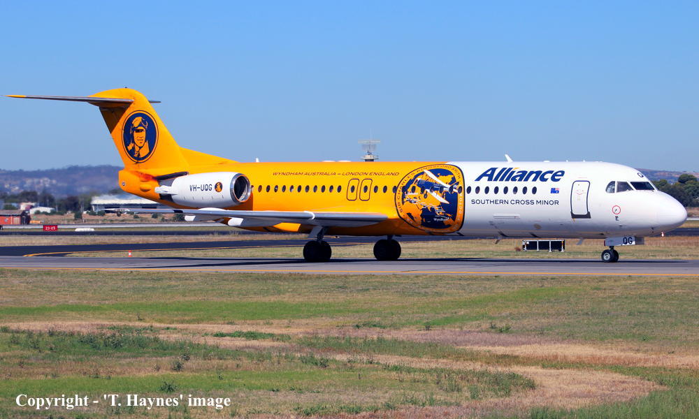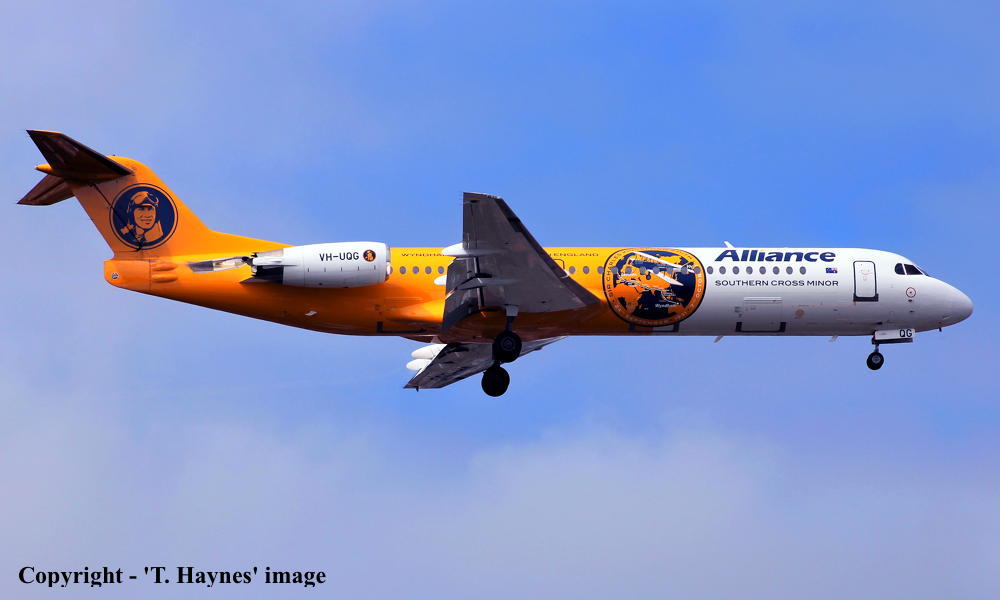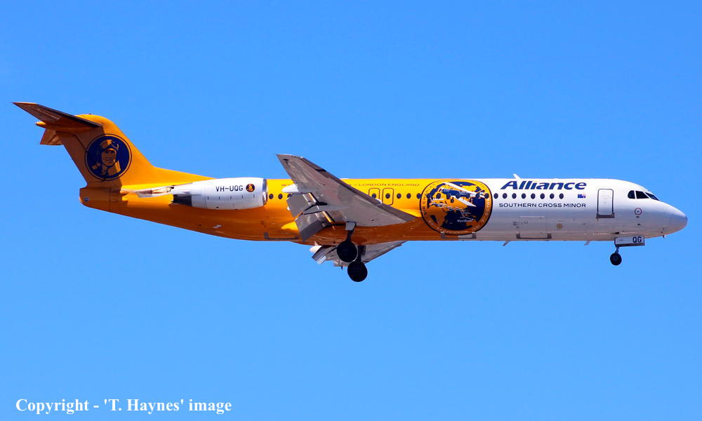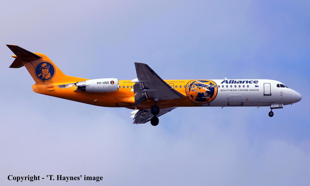 This aircraft was ordered new by American Airlines - ? The American registration 'N1474D' reserved by 'American Airlines' - September 16, 1988 The temporary export registration 'E-1349 / PH-EZV' was applied to the aircraft - April 29, 1994 The temporary export registration E-1349 / PH-EZV was reserved by Fokker Aircraft B.V. - May 03, 1994 First flown as 'PH-EZV' in the 'American Airlines' livery - May 25, 1994 Powered by Rolls Royce Tay 650-15 engines Certificate of Airworthiness (CofA) issued - June 06, 1994 Sold to Fokker Aircraft USA, Inc - June 07, 1994 Accepted by American Airlines at Amsterdam (Schiphol) - June 07, 1994 The aircraft was cleared for export to the United States - June 09, 1994 The temporary export registration 'E-1349 / PH-EZV' was removed from the aircraft - June 09, 1994 Entered onto the United States Aircraft Register as N1474D - June 09, 1994 Registered to American Airlines Inc The aircraft was configured with seating for 8 business class and 79 economy class passengers Departed Amsterdam (Schiphol) on the ferry flight to the United States - June 10, 1994 Operated its first revenue service Chicago (O'Hare) - Atlanta - June 12, 1994 Operated its last revenue service - February 02, 2003 Ferried Tulsa - Mojave for storage - February 04, 2003 The aircraft had flown 21,414 hours with 14,412 cycles Registered to Wells Fargo Bank Northwest Trustee - October 14, 2003 Leased to Helvetic Airlines, Switzerland - 2004 It arrived at Eindhoven in 'American Airlines' livery - October 09, 2004 Ferried Eindhoven - Woensdrecht for maintenance - October 10, 2004 Cancelled from the United States Aircraft Register - October 12, 2004 Entered onto the Dutch Aircraft Register as PH-ZFJ - November 11, 2004 Registered to Fokker Services BV, Hoogerheide BvL6641 Cancelled from the Dutch Aircraft Register - February 03, 2005 Entered onto the Austrian Aircraft Register as OE-LVG - February 03, 2005 Registered to Austrian Airlines Lease & Finance Corp Ltd The aircraft was named 'Krakow' Leased to Slovak Airlines as the registered operator It had been reconfigured with 105 Economy class seats Ferried Woensdrecht - Vienna - February 03, 2005 It was observed at Vienna in an all-white livery - February 13, 2005 It was observed at Bratislava in the 'Slovak' livery - February 18, 2005 Returned to Austrian Airlines at the end of the lease - June 21, 2005 Entered service with Austrian Arrows in the 'Star Alliance' livery - June 28, 2005 It was observed at Innsbruck in the 'Star Alliance' livery - October 28, 2006 Ferried to Norwich for repairs - January 15, 2011 It was observed at Geneva in the 'Star Alliance' livery with additional '15 Years' titles - June 15, 2012 The aircraft was transferred to Austrian Airlines -July 01, 2012 The aircraft had been reconfigured with 100 Economy Class seats Operated its final revenue service Graz - Vienna as OS964 - November 07, 2016 Ferried Vienna - Bratislava for storage - November 15, 2016 Sold to Alliance Airlines Pty Ltd - May 2019 Cancelled from the Austrian Aircraft Register - May 2019 Entered onto the Australian Aircraft Register as VH-UQG - May 17, 2019 Registered to Alliance Airlines Pty Ltd, Eagle Farm, Brisbane Ferried Bratislava - Norwich for maintenance and repainting - December 12, 2019 It was painted in the 'Sir Charles Kingsford Smith - Southern Cross' livery This was to commemorate the first crossing of the Pacific Ocean by Charles Kingsford Smith in 1928 Rolled out a Norwich in the special livery - January 04, 2020 Test flown Norwich - Norwich - January 07, 2020 Ferried Norwich - Bratislava as SXI2003 - January 09, 2020 Departed Bratislava on the ferry flight to Australia as SXI2003 - January 15, 2010 It arrived at Brisbane on completion of the ferry flight - January 19, 2020 Ferry route: Bratislava - Hurghada - Al Ain - Nagpur - Penang - Darwin - Brisbane Test flown Brisbane - Brisbane (1 hour 09 minutes) as UTY9108/QQ9108 - January 30, 2020 Operated its first revenue service Brisbane - Maroochydore as UTY4078/QQ4078 - February 03, 2020 Current with Alliance Airlines |
