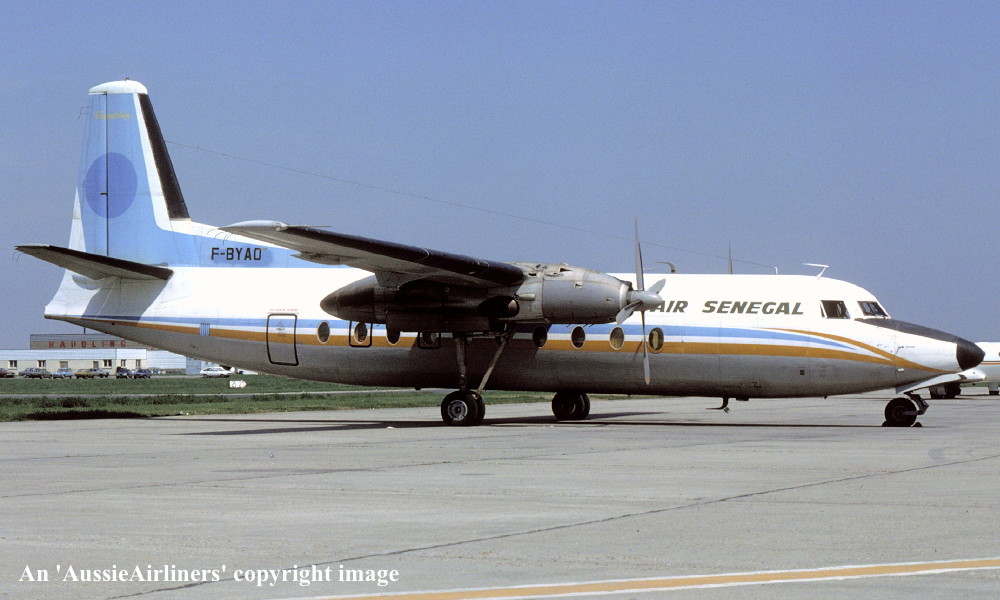 This aircraft was ordered new by Trans Australia Airlines with the allocated registration of 'VH-TFH' Aircraft had been allocated the name ' Freeman Cobb' but this was not applied It was leased to East-West Airlines whilst the aircraft was under construction - July 12, 1959 First flown as 'PH-FAX' - July 16, 1959 Test flown by Captains J. Swan, A. Smith (East-West); S. Walters, C. Dik (Fokker) - July 17, 1959 Accepted by East-West Airlines at Amsterdam (Schipho) as 'VH-TFH' - July 28, 1959 Entered onto the Australian Aircraft Register as VH-EWA - July 29, 1959 Registered to Australian National Airlines Commission, Melbourne Departed Amsterdam (Schiphol) on delivery flight as 'VH-TFH' for insurance / legal purposes - July 30, 1959 Delivery route: Marseilles - Rome - Athens - Beirut - Kuwait - Bahrain - Sharjah - Karachi - New Delhi - Calcutta - Rangoon - Bangkok - Saigon - Labuan - Zamboanga - Davas - Sorong - Darwin - Mt Isa - Longreach - Brisbane Flight crew: Captains J. Swan, A. Smith; Navigator Captain D. Lawrence During the lay-over at Brisbane the aircraft's registration was amended to VH-EWA Ferried Brisbane - Tamworth on delivery to East-West Airlines - August 12, 1959 Ferry flight overflew Coolangatta - Grafton - Glen Innes - Inverell - Gunnedah - Quirindi at low level The aircraft was named 'City of Tamworth' Operated its first revenue service - August 26, 1959 Registered to East-West Airlines Ltd, Tamworth - February 14, 1963 The aircraft suffered an engine fire when six high pressure turbine blades separated from the disc - May 02, 1975 The fire was in the starboard engine and initially it could not be extingusihed This resulted in the flight crew electing to make an emergency landing without further incident On landing it was discovered that the engine fire had gone out Sold to Australian Aircraft Sales - November 14, 1977 Sold to Uni-Air, France - November 15, 1977 Entered onto the French Aircraft Register as F-BYAO - November 15, 1977 Cancelled from the Australian Aircraft Register - November 18, 1977 The aircraft had flown 43,277 hours with 53,818 cycles Departed Tamworth on the ferry flight to France - December 13, 1977 Leased to Air Senegal as F-BYAO - November 11, 1978 Sold to L'Institut Geographique National - 1986 Painted with Aviation de Recherche Atmospherique et de Teledetection (ARAT) titles - July 01, 1985 The fitment of a large forward freight door was certified - February 1986 Reregistered F-WYAO - November 1988 Reregistered F-BYAO - November 1991 It was reported as being withdrawn from service and stored at Creill, France - January 2004 Sold to Aviation Rotables Supply, Dinard for parts and broken up - August 2007 Cancelled from the French Aircraft Register - February 12, 2010 |
