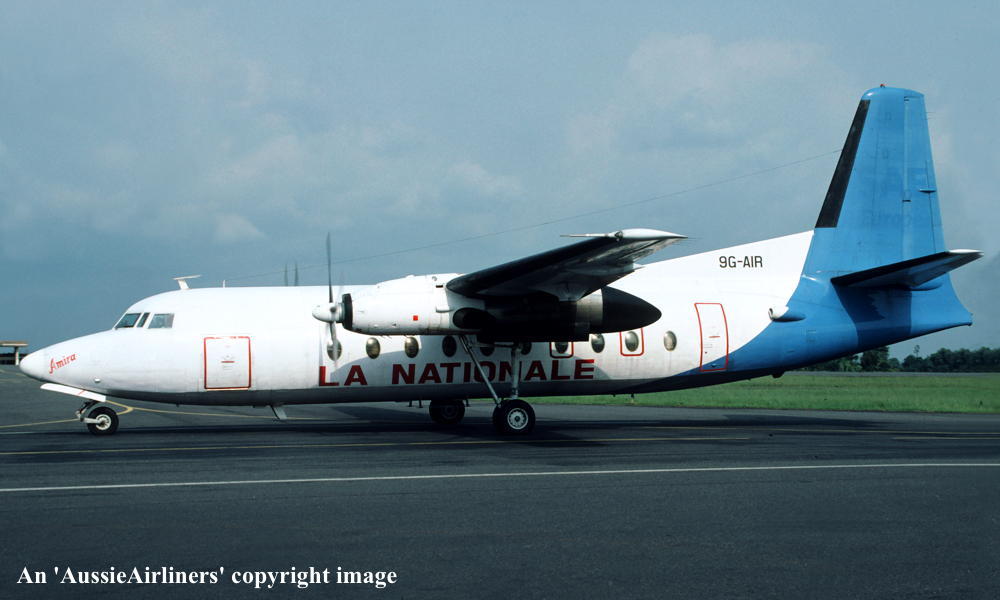 First flown as 'PH-FGH' - December 24, 1964 Entered onto the Australian Aircraft Register as VH-EWG - January 06, 1965 Registered to East-West Airlines Ltd Accepted by East-West Airlines at Amsterdam (Schiphol) - January 07, 1965 It arrived at Tamworth on completion of the delivery flight - January 18, 1965 Operated its first revenue service - February 07, 1965 The aircraft was named 'City of Orange' - November 12, 1965 Operated TAAs Sydney (Kingsford Smith) - Coolangatta - Sydney services - February 1968 to July 1968 Carried 'Sun Fun Holidays' titles for several weeks promoting the Gold Coast - August 12, 1972 Sold to Air Executive, Norway - October 29, 1978 Entered onto the Norwegian Aircraft Register as LN-NPI - October 29, 1978 Cancelled from the Australian Aircraft Register - October 30, 1978 It had flown 35,462 hours with 40,462 cycles Departed Tamworth on the ferry flight to the United Kingdom for overhaul and painting - October 30, 1978 It arrived at Norwich on completion of the ferry flight - November 08, 1978 Transferred to Busy Bee when Air Executive was renamed - September 01, 1980 Withdrawn from service and prepared for lease to Air Nordic, Sweden Cancelled from the Norwegian Aircraft Register - ? Entered onto the Swedish Aircraft Register as SE-KZF - May 18, 1993 Sold to Swetrail Transport AB - July 30, 1993 Lease to Air Nordic continued Returned to Swetrail, withdrawn from use and stored at Woensdrecht, Netherlands - June 15, 1996 Leased to SAE Swe Aviation Europe AB - April 1998 Departed Woensdrecht on delivery to SAE Swe Aviation Europe AB - September 03, 1998 The intended sub-lease to Eureca SRL was not taken up - 1999 Major overhaul carried out at Woensdrecht - October 04 - 28, 1999 Withdrawn from service at stored at Malmo (Strurup) in the standard SWE livery without engines - 1999 - 2002 Sold to Sobel Air, Ghana - August 30, 2002 Major overhaul carried out at Malmo (Strurup) - October 2002 Cancelled from the Swedish Aircraft Register - November 04, 2002 Entered onto the Ghana Aircraft Register as 9G-AIR - November 04, 2002 Registered to Sobel Air Ghana Ltd Test flown at Malmo - November 07, 2002 Departed Malmo (Strurup) on the ferry flight to Ghana - November 08, 2002 Made a precautionary landing at Groningen-Eelde Airport (Netherland) due to engine problems - November 08, 2002 Ferried Groningen Eelde - Jersey - November 11, 2002 It arrived at Accra (Kotabu) on completion of the ferry flight - January 30, 2003 Reposessed due to the non payment of accounts - February 01, 2003 Leased to National Airways Gabon - October 2003 Returned to Sobel Air Ghana Ltd - 2004 Leased to Antrak Ghana Ltd - March 2005 Returned to Sobel Air Ghana Ltd on termination of the lease - 2006 It was observed withdrawn from use and stored at Accra (Kotabu) - October 09, 2006 Scrapped - ? |