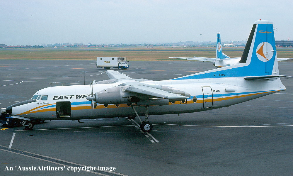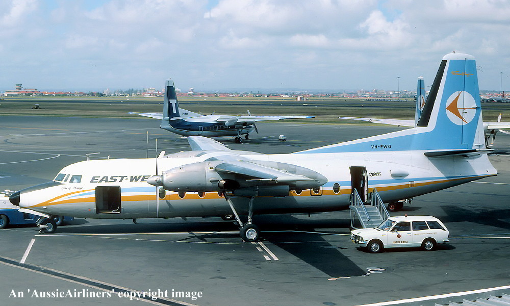 VH-EWG. East-West - 'City of Orange' in the revised livery at Sydney Kingsford Smith Airport, date unknown. (G. Bennett Collection Copyright Image 1993-252.) |