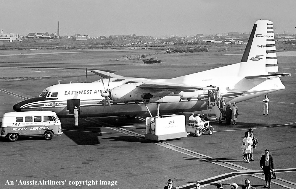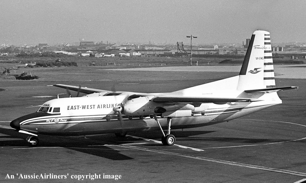 VH-EWG. East-West Airlines - 'City of Orange' in the original livery at Sydney Kingsford Smith Airport, January 1966. (R. N. Smith Copyright Image 1999-143.) |