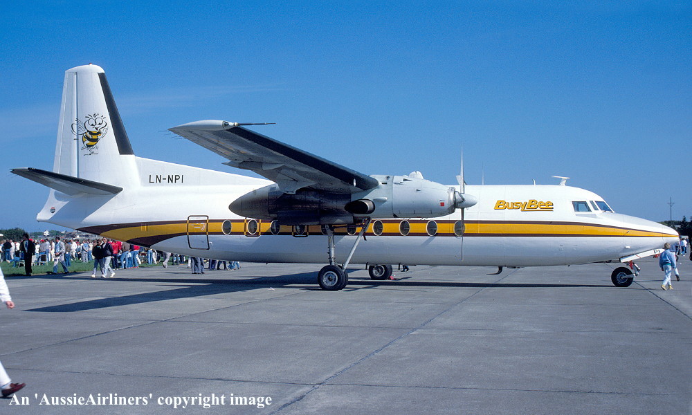 LN-NPI. Busy Bee - in the standard livery at an unknown airport, July 1982. (R. N. Smith Collection Copyright Image 1999-011.) |