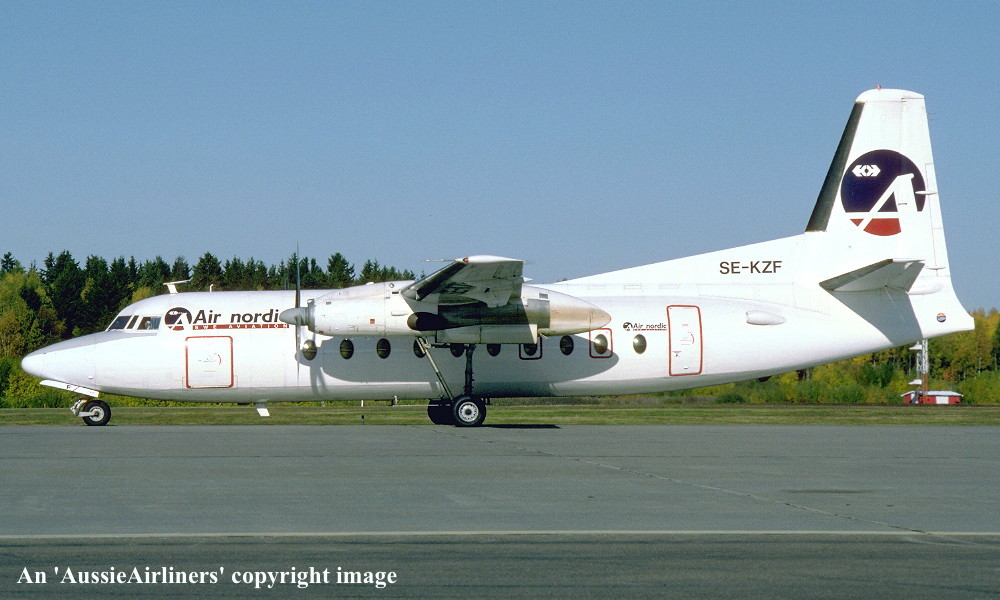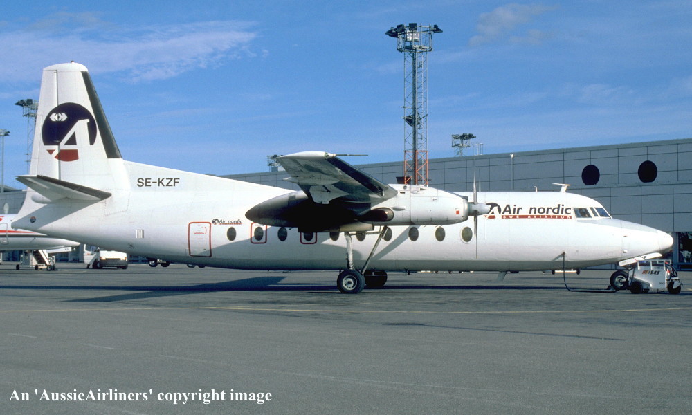 SE-KZF. Air Nordic Swe Aviation - in the standard livery at Stockholm Airport, July 1995. (R. N. Smith Collection Copyright Image 1999-737.) |