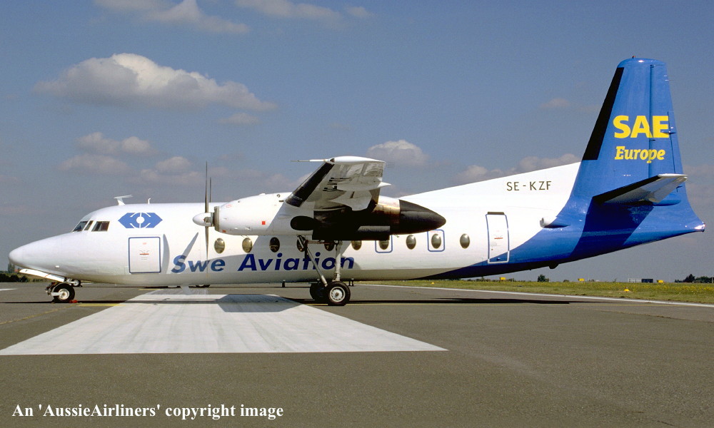 SE-KZF. Swe Aviation - in the standard livery with additional 'SAE Europe' titles at an unknown airport, October 1997. (R. N. Smith Collection Copyright Image 1999-830.) |