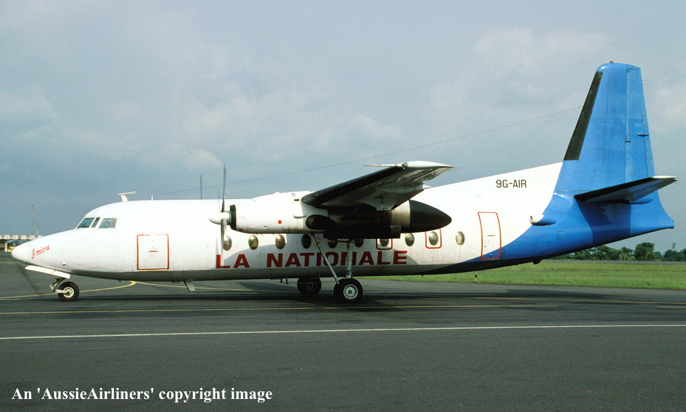 9G-AIR. La Nationale - 'Amira' in the basic Swe Aviation livery at Libraville Airport, January 27, 2004. (J. Guillum Copyright Image 1993-129.) |