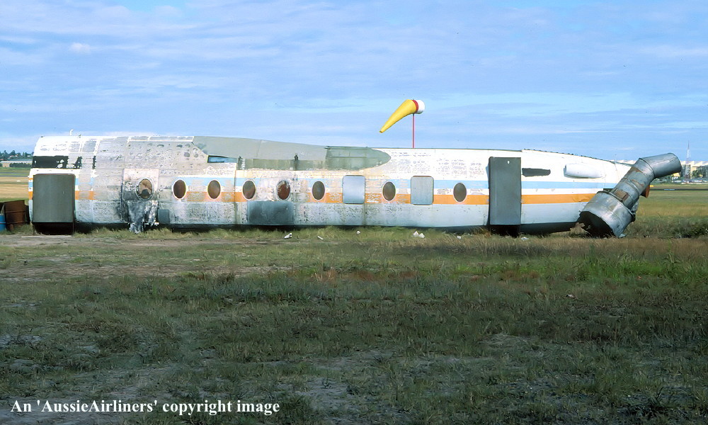 VH-EWL. East-West - the basic remains on the fire dump at Sydney Bankstown Airport, November 1983. (E. D. Daw Copyright Image 1993-247.) |
