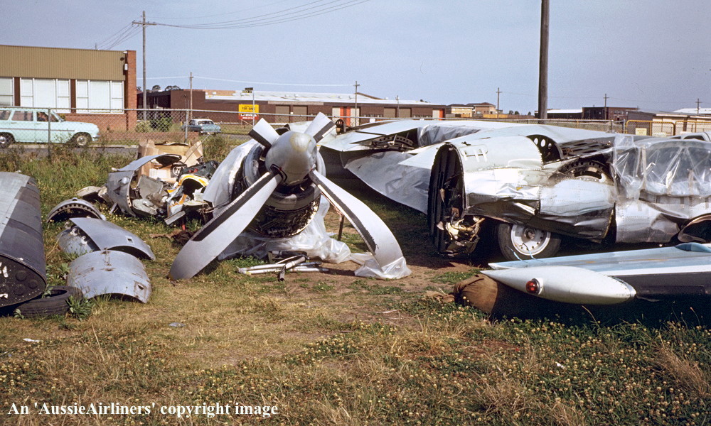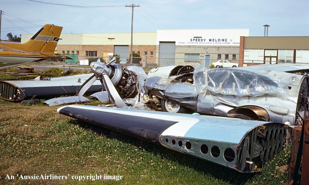 VH-EWL. East-West - the dismantled aircraft at Sydney Bankstown Airport, November 1974. (G. Wilkes Copyright Image 1999-349.) |