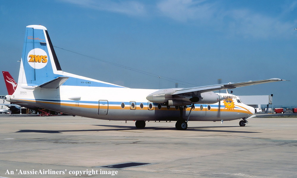 VH-EWQ. East-West - in the standard livery with additional 'Gold Coast Express - 2WS' titles at Sydney Kingsford Smith Airport, November 1983. (R. N. Smith Copyright Image 1993-590.) |