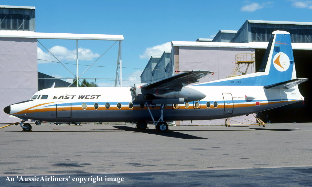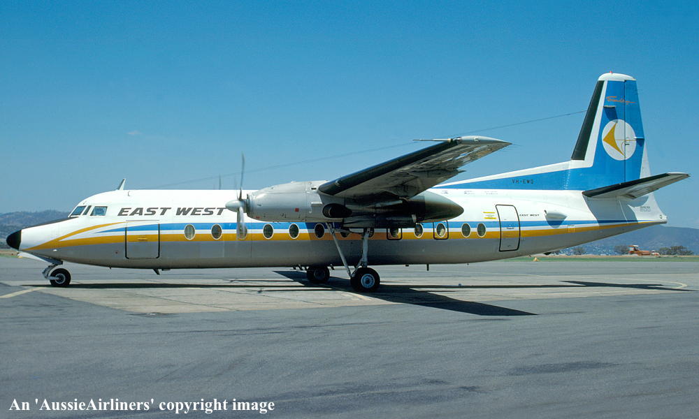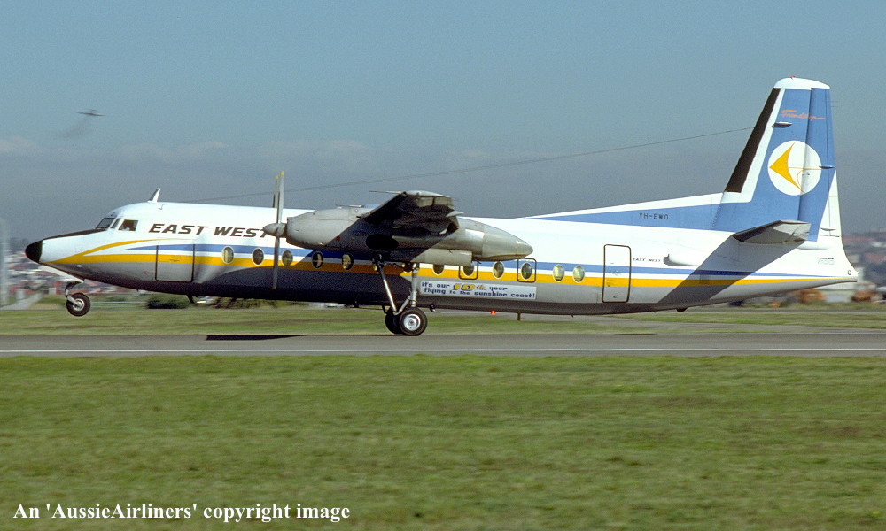 VH-EWQ. East-West - in the standard livery with additional 'Gold Coast Express - 4GC' titles at Sydney Kingsford Smith Airport, November 1983. (R. N. Smith Copyright Image 1999-680.) |