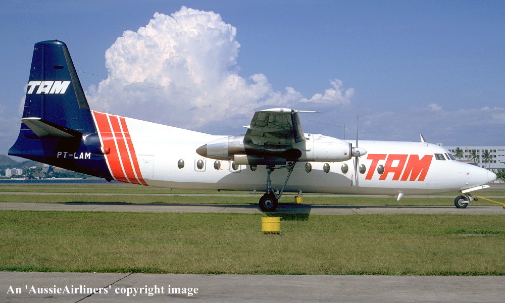 This aircraft was order new by East-West Airlines - April 24, 1975 Entered onto Dutch Aircraft Register as PH-EXY - August 19, 1976 Registered to Fokker BV First flown as 'PH-EXY' - September 15, 1976 Powered by Rolls-Royce Dart 532-7 engines Entered onto the Australian Aircraft Register as VH-EWQ - October 01, 1976 Registered to Pacific & Western Aviation Company Cancelled from the Dutch Aircraft Register - October 01, 1976 Accepted by East-West Airlines at Amsterdam (Schiphol) - October 02, 1976 It arrived at Tamworth on completion of the delivery flight - October 09, 1976 It was fitted with long range tanks and seating for 44-46 passengers for services to Norfolk Island Operated its first revenue service - December 08, 1976 Registered to East West Airlines (Operations) Pty Ltd - March 09, 1977 Carried 'Gold Coast Express' titles for a few weeks - November 1983 Withdrawn from service and stored at Tamworth - November 12, 1984 Departed Tamworth on the ferry flight to the Netherlands - November 24, 1984 Flight crew: Captain B. Gillespie Sold to Fokker - November 30, 1984 Cancelled from the Australian Aircraft Register - December 17, 1984 Entered onto Dutch Aircraft Register as PH-JBO - January 31, 1985 Leased to Transportes Aereos Meridionais SA t/a TAM - November 28, 1986 Entered onto the Brazilian Aircraft Register as PT-LAM - ? It was damaged in a belly-landing accident during a training flight at Ubereaba, Minas Gerais, Brasil - January 09, 1997 Tempory repairs were made and it was flown to TAM's home base - January 17, 1997 To view details on this accident please click 'HERE' Considered to be beyond economic repair and was written off |