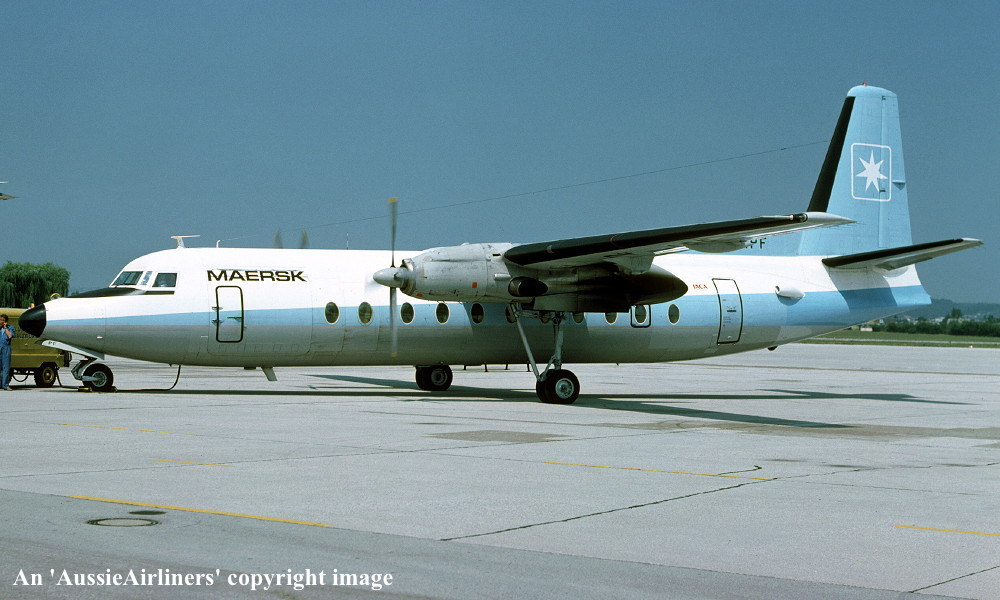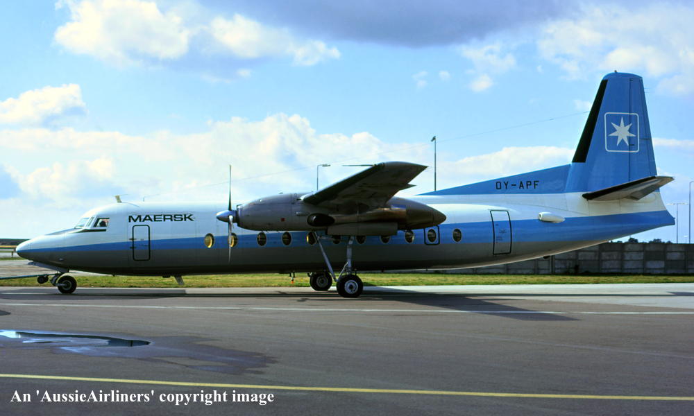 OY-APF. Maersk - in the standard livery at Copenhagen Airport, August 1976. (R. N. Smith Collection Copyright Image 1993-143.) |