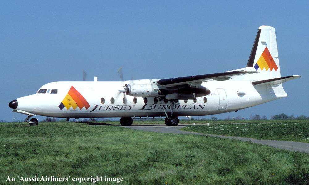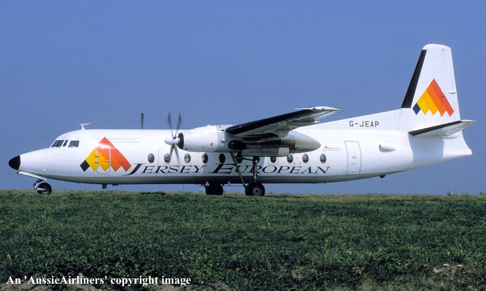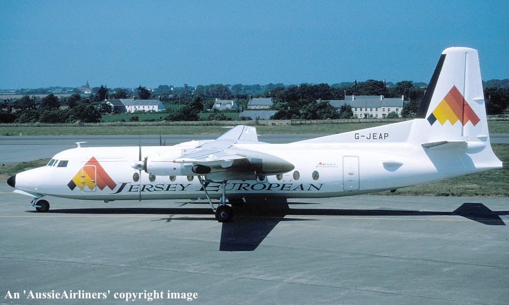 G-JEAP. Jersey European - in the standard livery at Jersey Airport, August 1995. (R. N. Smith Collection Copyright Image 1999-128.) |