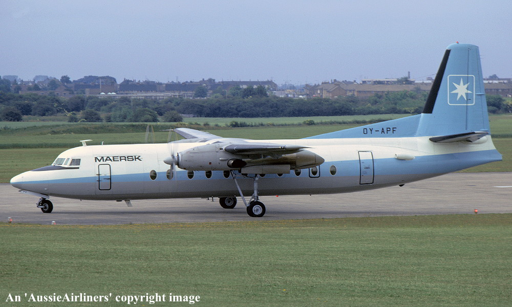 OY-APF. Maersk - in the standard livery at an unknown airport, July 1974. (R. N. Smith Collection Copyright Image 1999-134.) |
